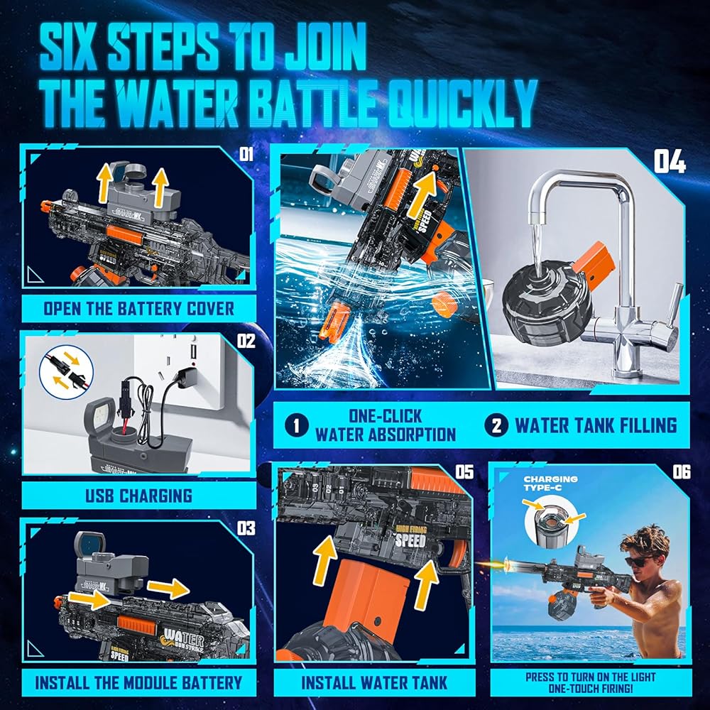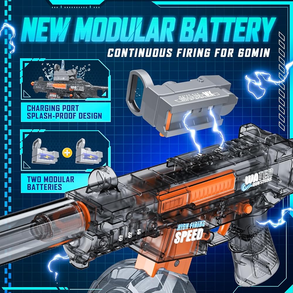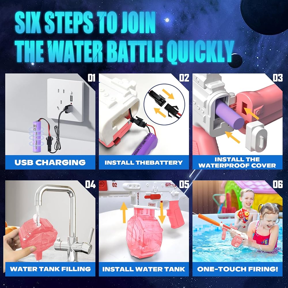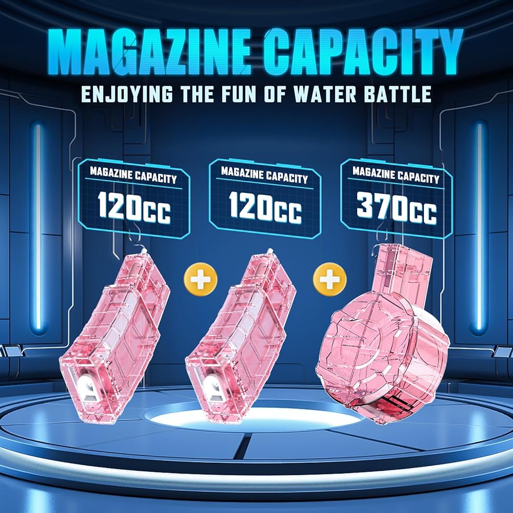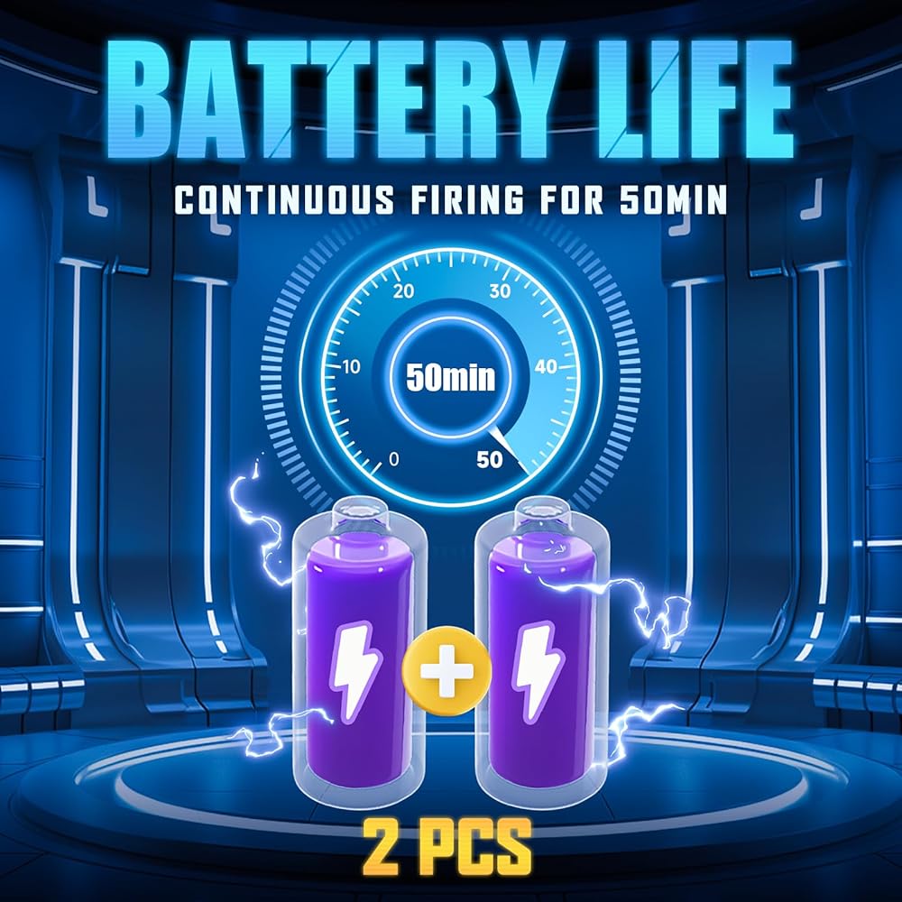 【ترقية السعة والتكوين الهائلة】 قل وداعًا لعمليات إعادة التعبئة في منتصف المعركة وفقدان الطاقة! تم تجهيز مسدس المياه الأوتوماتيكي الخاص بنا بـ 3 خزانات مياه (370CC+120CC+120CC) لتخزين كمية كبيرة من المياه، مما يضمن تجربة لعب لا تقبل المنافسة. مجهزة ببطاريتين قابلتين لإعادة الشحن لمدة 30 دقيقة تسمح لك بالتصوير المستمر لمدة 60 دقيقة! انس أمر نفاد الطاقة أو الماء، فقط انغمس في متعة الصيف! (يتم إعادة شحن بطارية واحدة خلال 110 دقيقة تقريبًا).