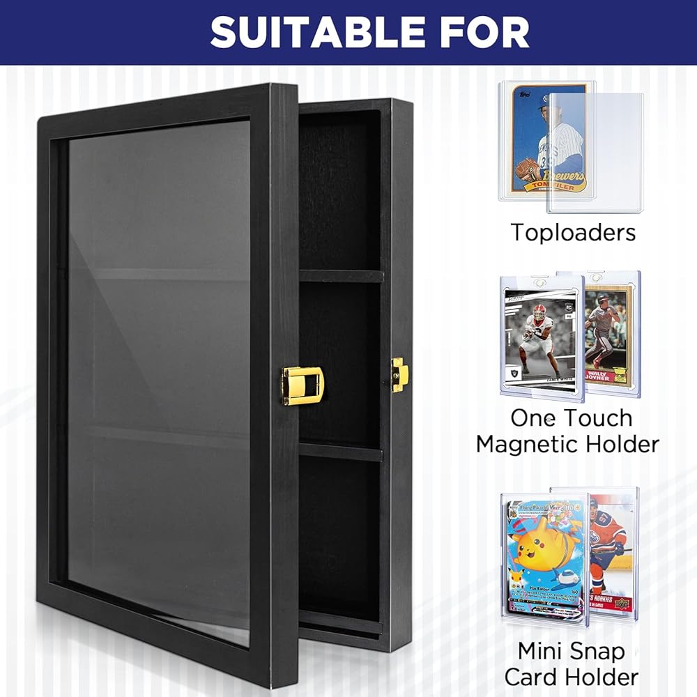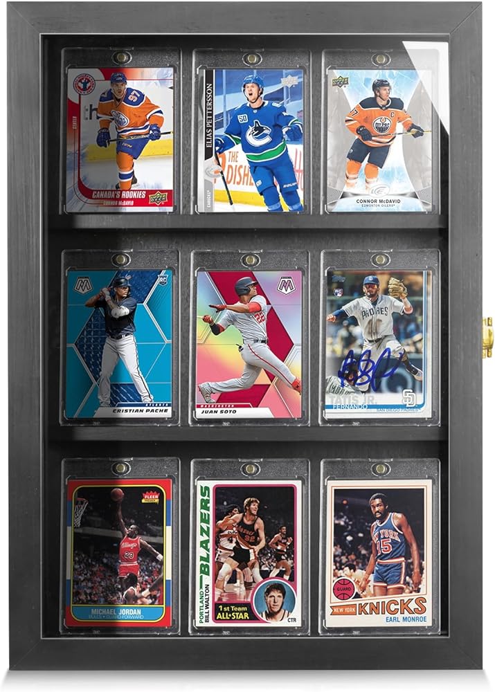 إطار عرض بطاقة التداول: الحجم الخارجي للإطار هو 10.9 بوصة عرض × 15.3 بوصة ارتفاع × 2.1 بوصة عمق، ويبلغ ارتفاع الحجرة 4.5 بوصة. يمكن للإطار عرض 9 حاملات بطاقات مغناطيسية بسهولة. تحمل 9 قطع من بطاقات النجوم الرياضية للبيسبول وكرة السلة وكرة القدم والهوكي وبطاقات التداول الأخرى.