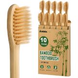 فرش أسنان من الخيزران للبالغين، 10 قطع من فرش الأسنان الخشبية القابلة للتحلل البيولوجي، فرشاة أسنان خشبية ذات شعيرات ناعمة طبيعية خالية من مادة BPA، صديقة للبيئة، قابلة للتحلل ومستدامة
