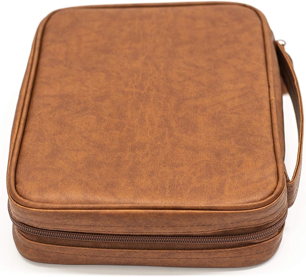 Bible cover outside dimensions measure approximately 7.25 x 10.25 x 2 inches. Accommodates a large Bible or book that is 6.5 x 9.25 x 1.75 inches or smaller.