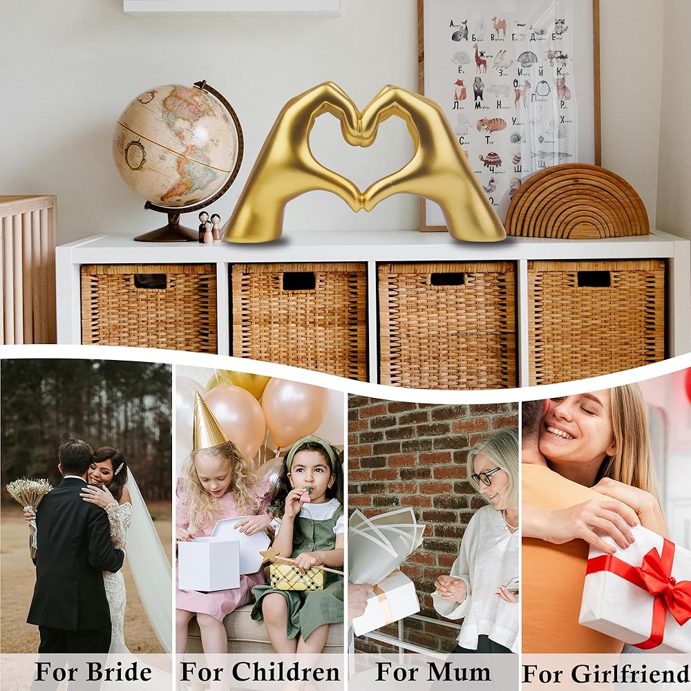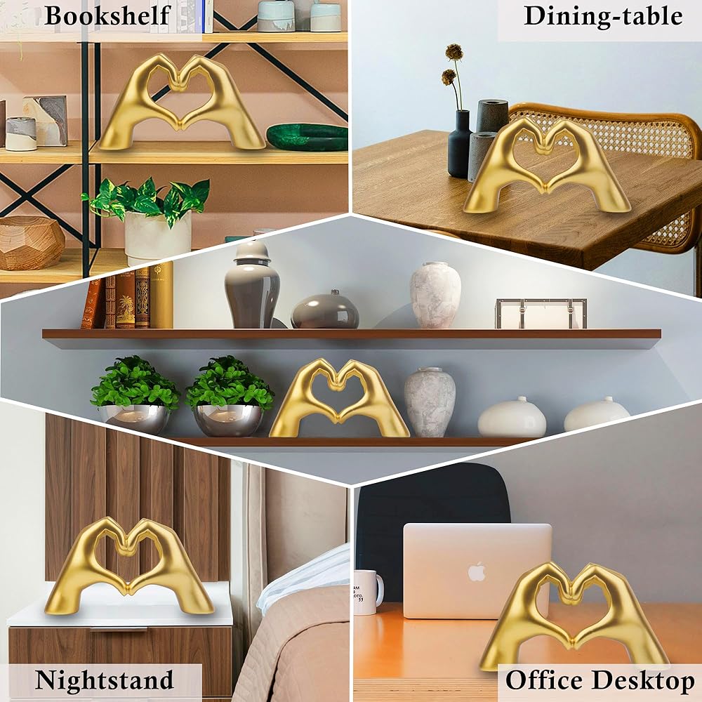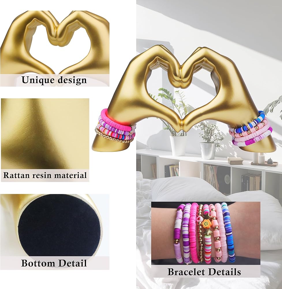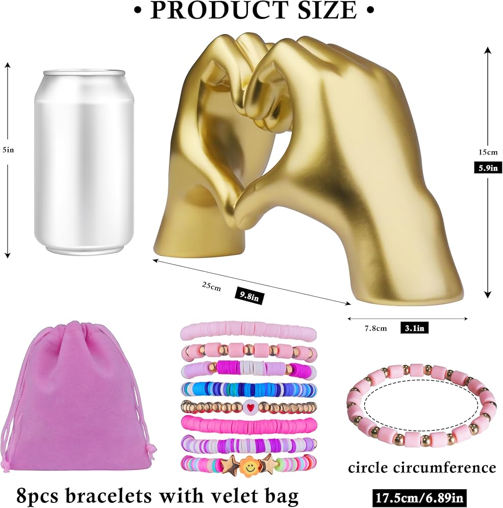 ❤إيماءة يد القلب بحجم السوار. يبلغ طول كل منحوتة 9.8 × 5.5 ارتفاع × 3.1 عرض. حجم الديكور الذهبي مناسب لرف الكتب، وطاولة القهوة، وسطح المكتب، والمدفأة، والخزانة، وقطعة الموقد، والمكتب، وخزانة التلفزيون، ومركز الترفيه، ومكان العمل، وما إلى ذلك. طول سوار الصداقة هو: 6.7 بوصة.