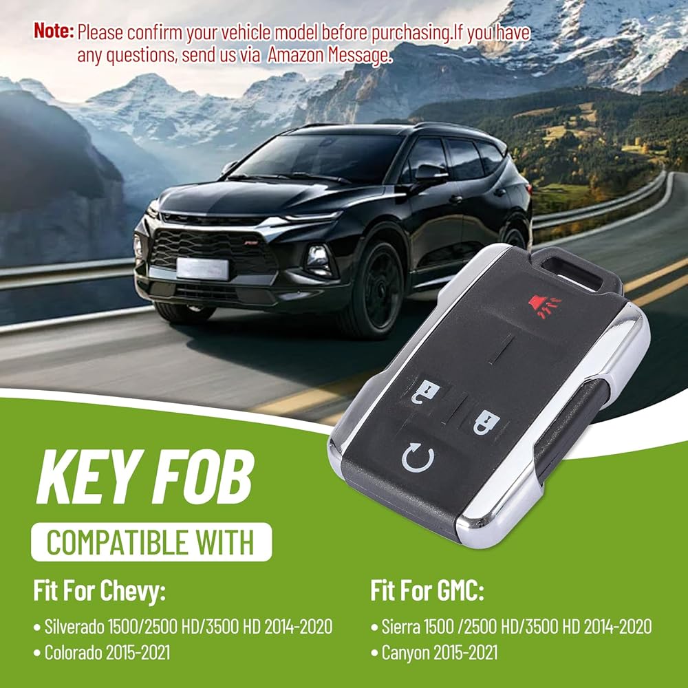 【استبدال مفتاح Fob】تم تصميم سلسلة مفاتيح الدخول بدون مفتاح لسيارة Chevy Silverado1500/2500HD/3500HD 2014-2020، Colorado 2015-2021، GMC Sierra1500/2500HD/3500 HD 2014-2020، GMC Canyon 2015-2021
