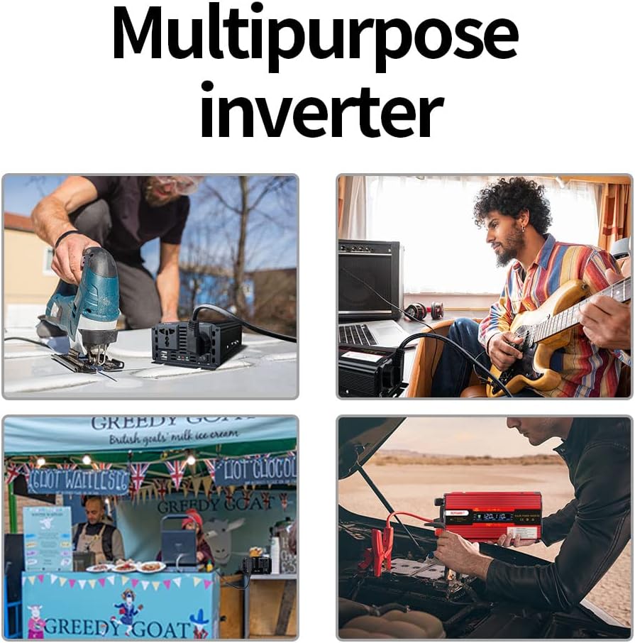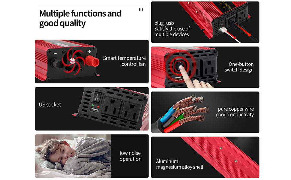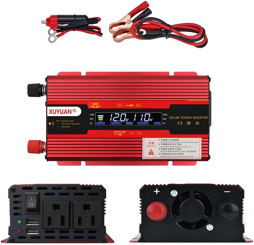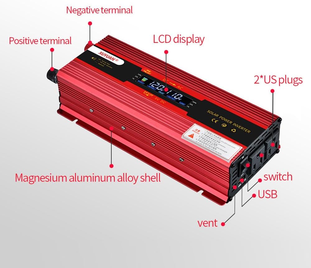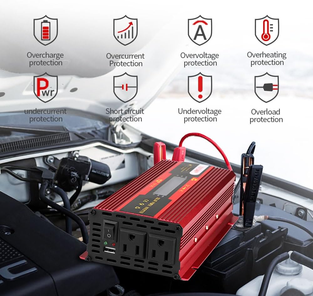 🚗[تصميم خاص]: مروحة تبريد مدمجة للتحكم في درجة الحرارة. أرض معزولة محايدة. يأتي قطعتان من مشابك البطارية وقابس ولاعة السجائر مقاس 24 بوصة مع عاكس الطاقة، مما يجعل عاكس الطاقة يمكن توصيله بأي مركبة تقريبًا. يوفر الجسم المتين المصنوع من الألومنيوم حماية متقدمة وأسهل للتبريد.