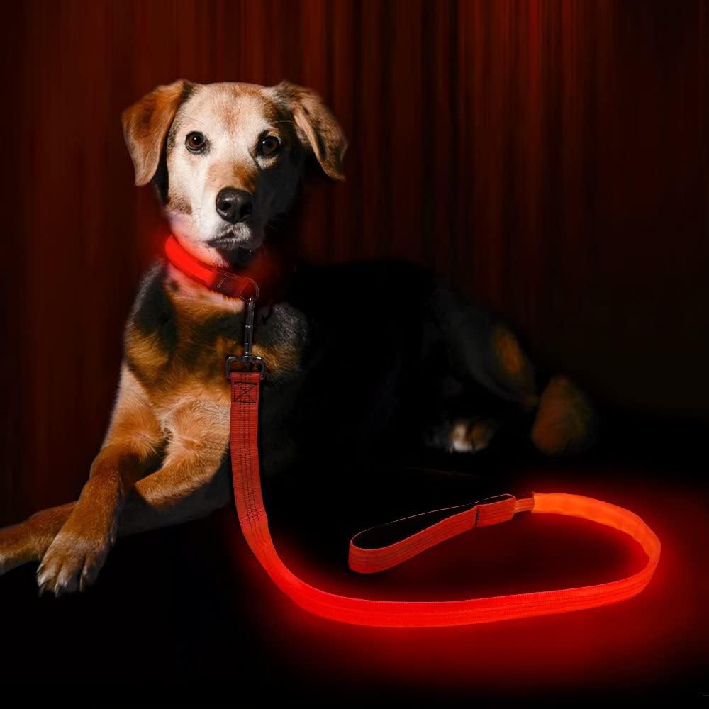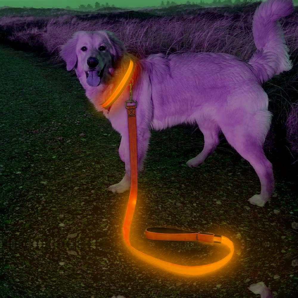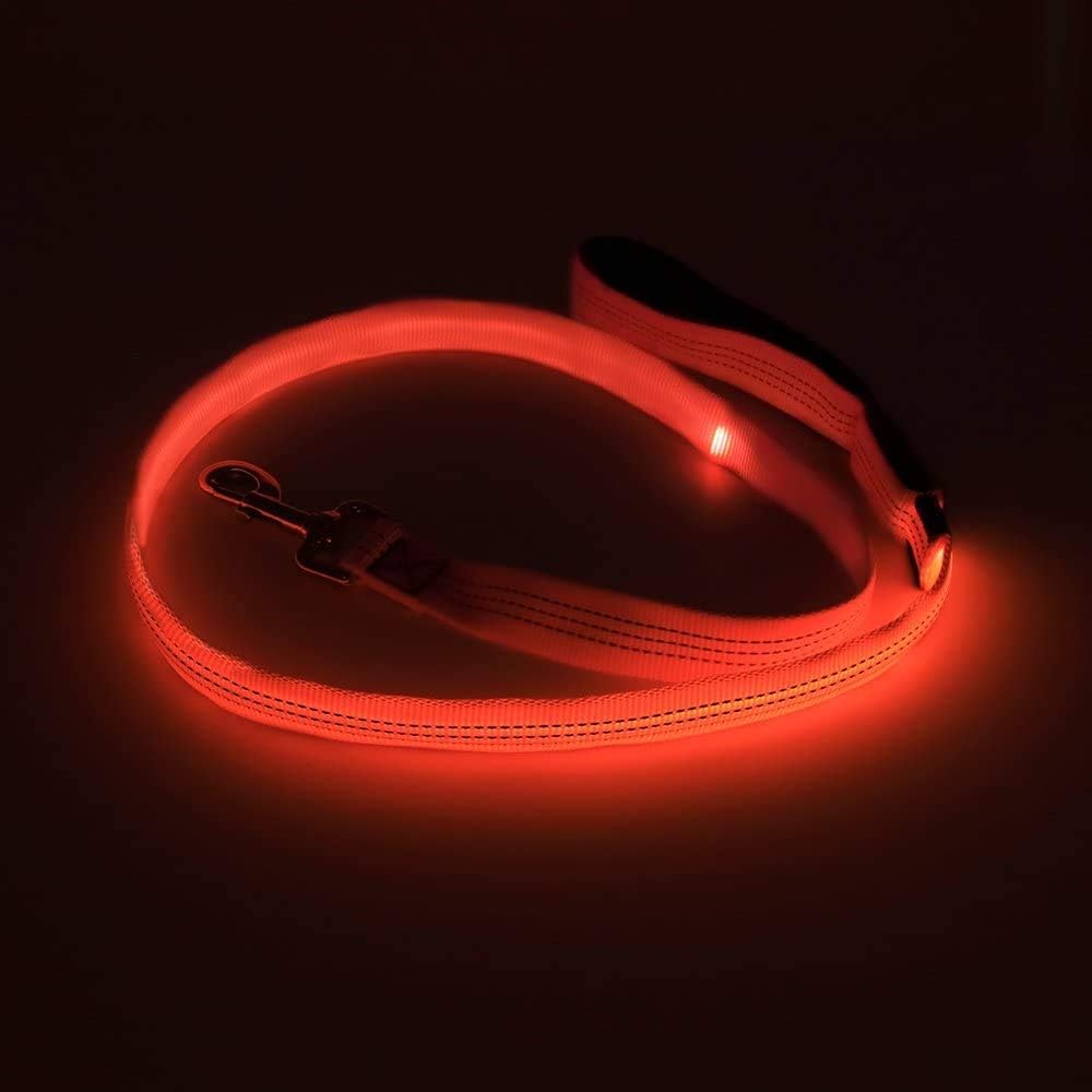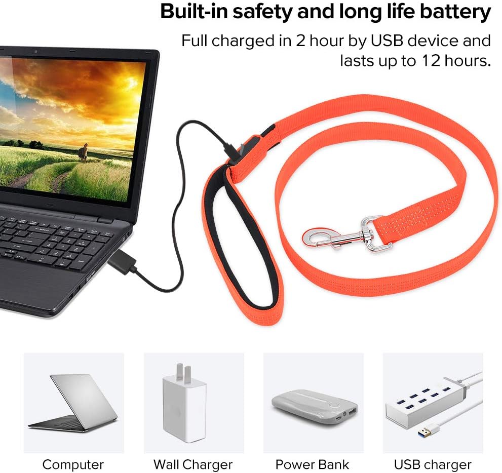 مقود الكلب العاكس LED - مقود الكلب المضيء في الظلام - مقود الكلب المضيء بطول 4 أقدام للكلاب الصغيرة والمتوسطة والكبيرة (برتقالي)