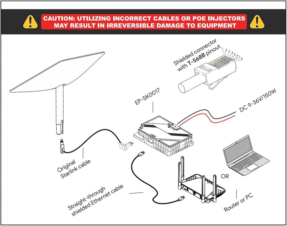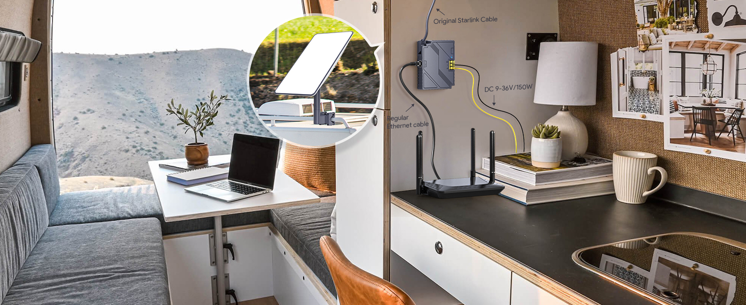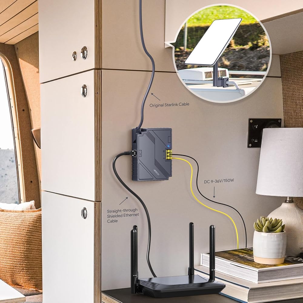 EDUP 3 في 1 Starlink Gen2 Step Up PoE Injector 150W مع حماية شاملة لمعيار Starlink المشغل، يدعم كابل Starlink الأصلي لشبكة Starlink Dishy V2 الفضائية إلى جهاز التوجيه/الكمبيوتر الشخصي