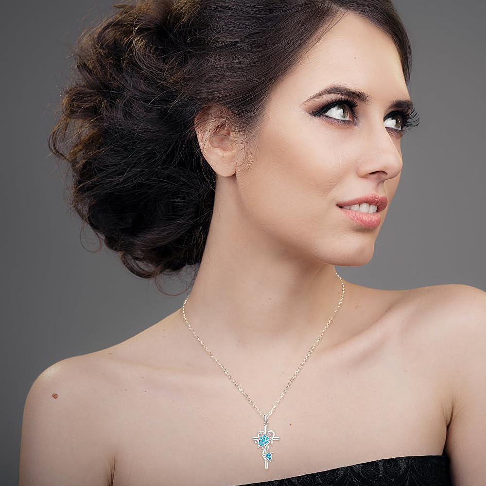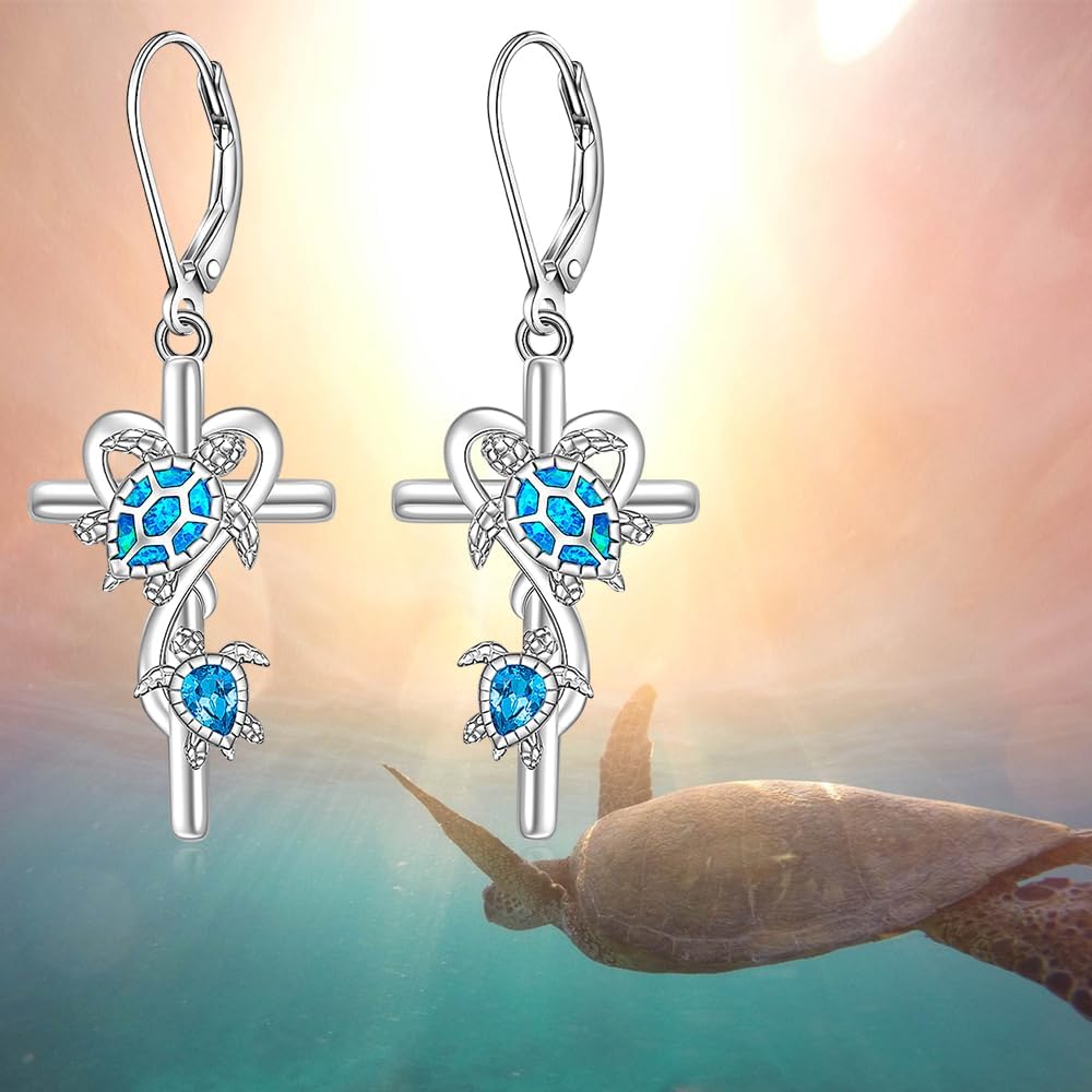 قلادة وأقراط السلحفاة مجوهرات العقيق الأزرق على شكل سلحفاة البحر للنساء من الفضة الاسترليني، هدايا عيد الأم والابنة والأم