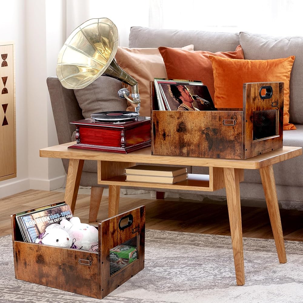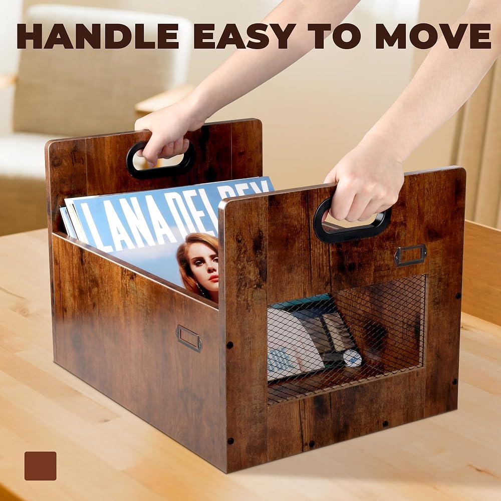 【متعدد الوظائف】يمكن استخدامه ليس فقط كصندوق حليب لسجلات الفينيل، ولكن أيضًا كسلة تخزين متنوعة لجمع المجلات والألعاب والمستندات والكتب والوجبات الخفيفة وما إلى ذلك. يمكنك تخزين العناصر بحرية حسب تفضيلاتك!