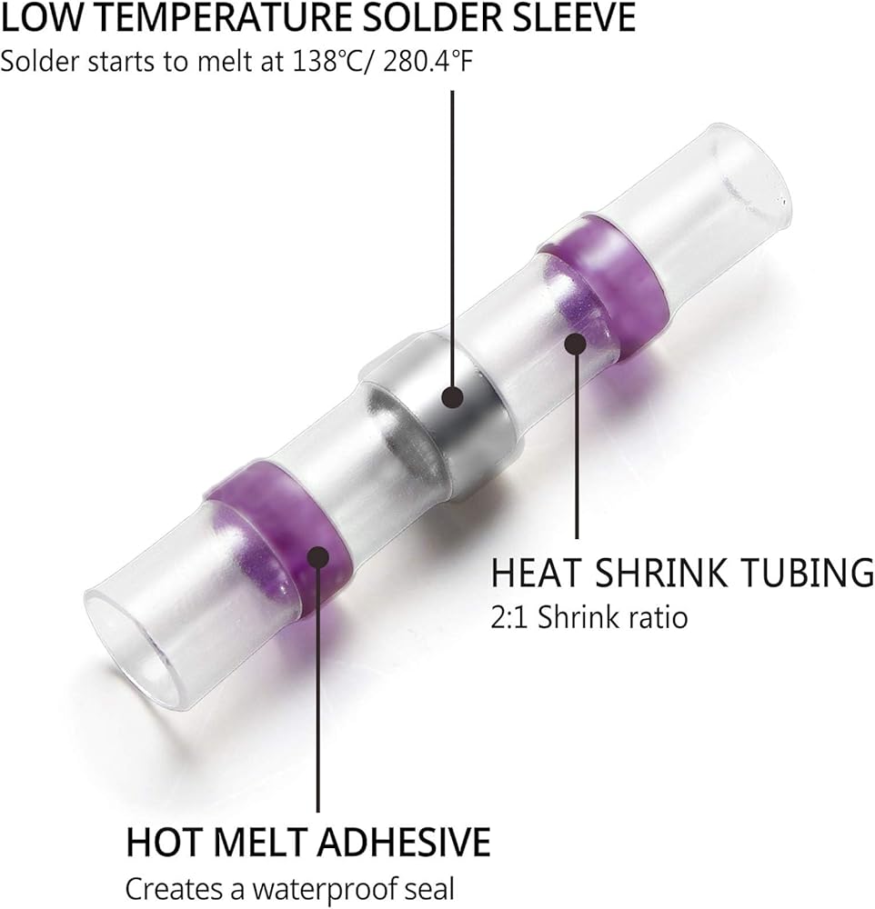 ▶Waterproof Seal - Dual-Walled tubing ensures waterproof seal and prevents wire corrosion. Hot melt adhesive & solder inside, sealed with advanced waterproof function.