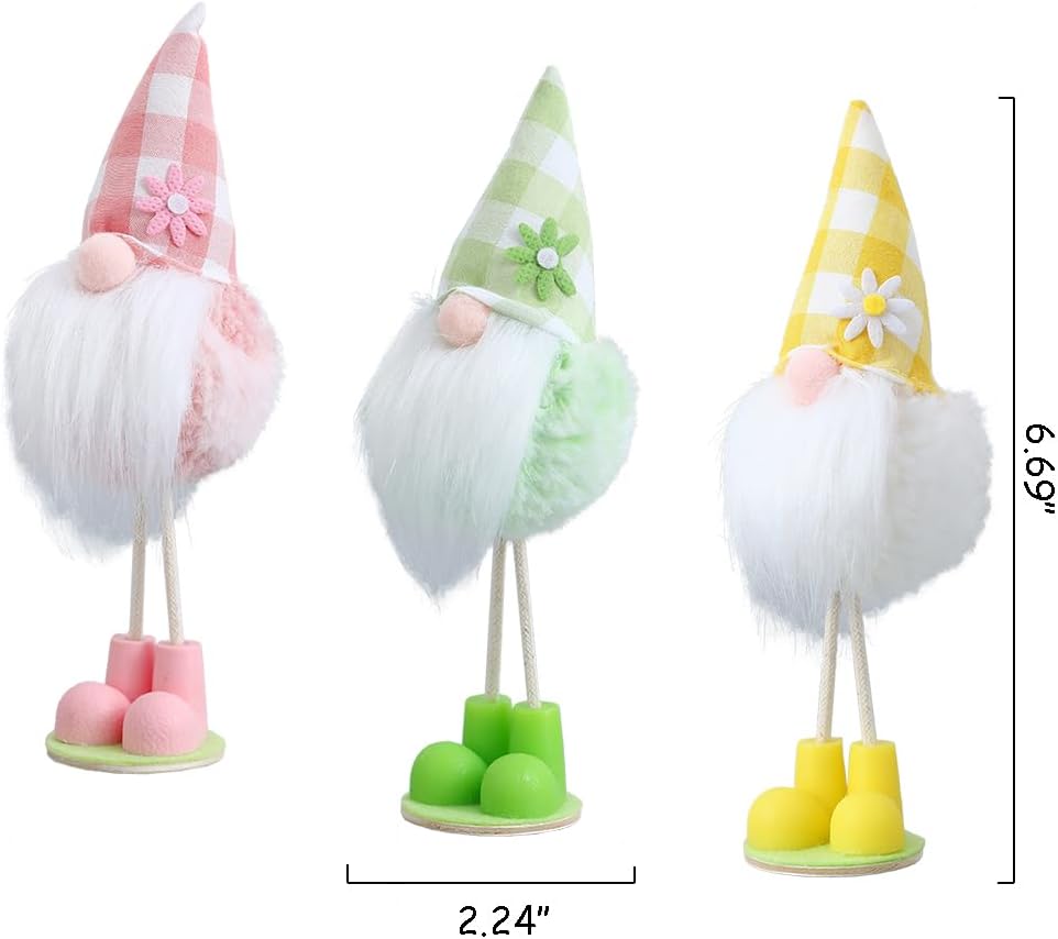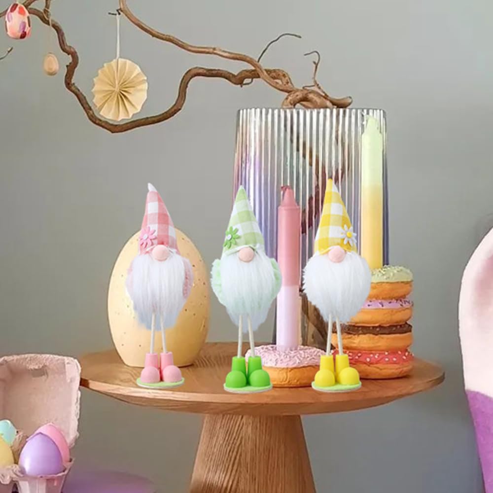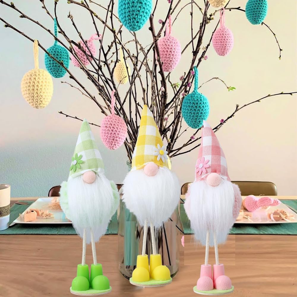 [زينة عيد الفصح] مجموعة تمثال جنوم اللطيف تتشارك في ثلاث دمى باللون الوردي والأخضر والأصفر. نظام الألوان الربيعي المشرق والمنعش يجعلها خيارًا رائعًا لحفلة عيد الفصح أو الربيع!