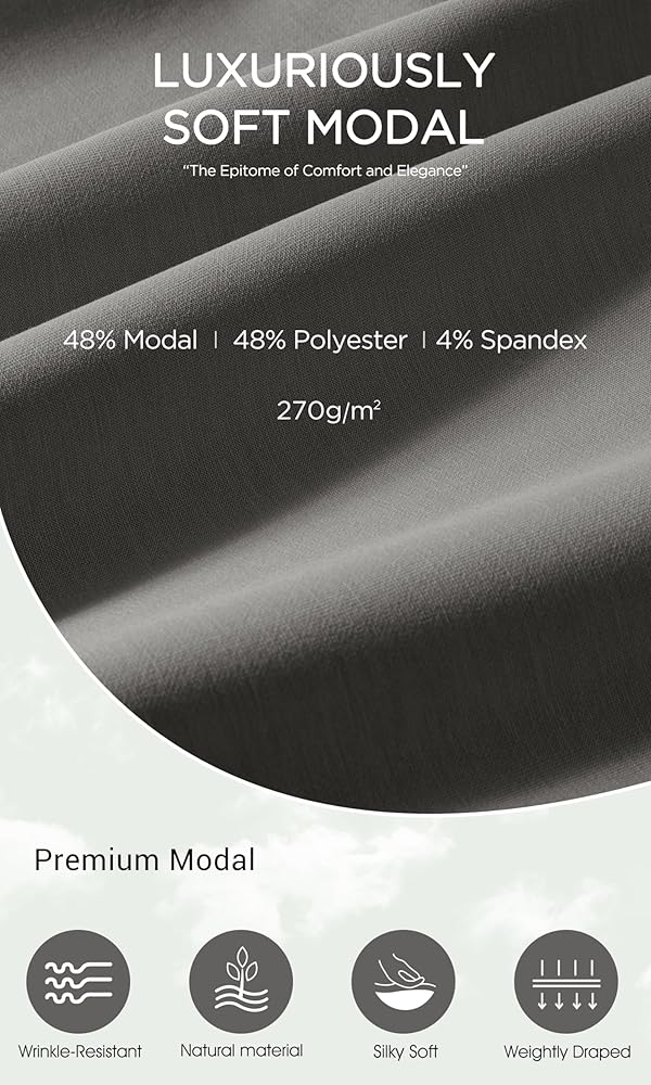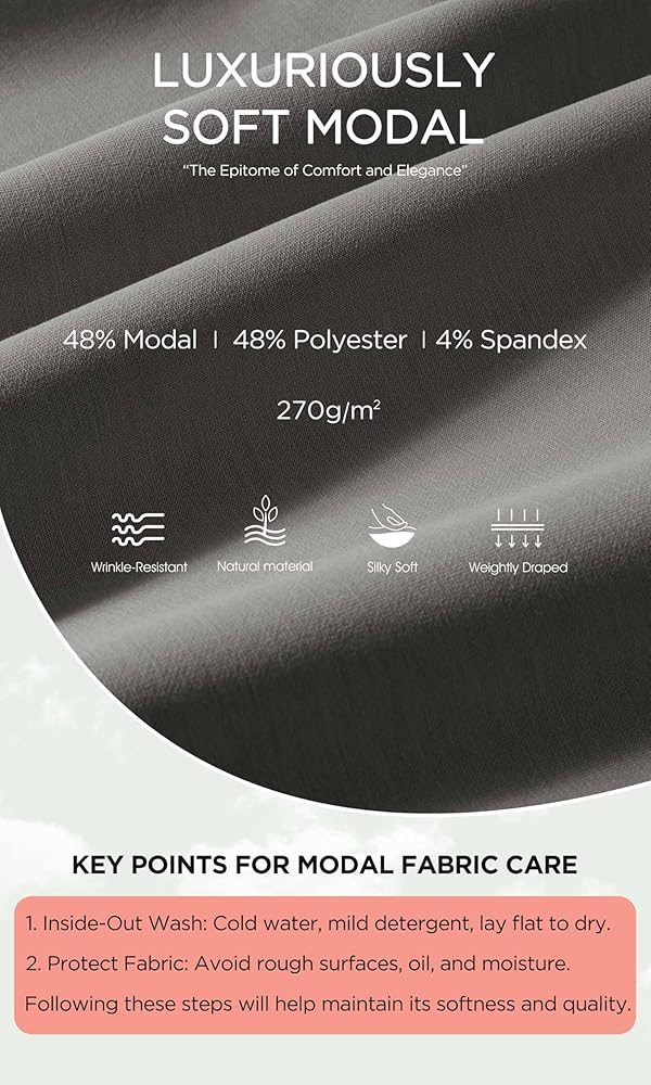 • ➤ ناعم مودال: مصنوع من مزيج نسيج مودال فائق النعومة مع البوليستر والألياف لدنة، نسيج متوسط ​​الوزن 270 جم/م2، منسوج بثقل، يمتص الرطوبة ومقاوم للتجاعيد، ويحافظ على شكل القمصان العلوية جيدًا.