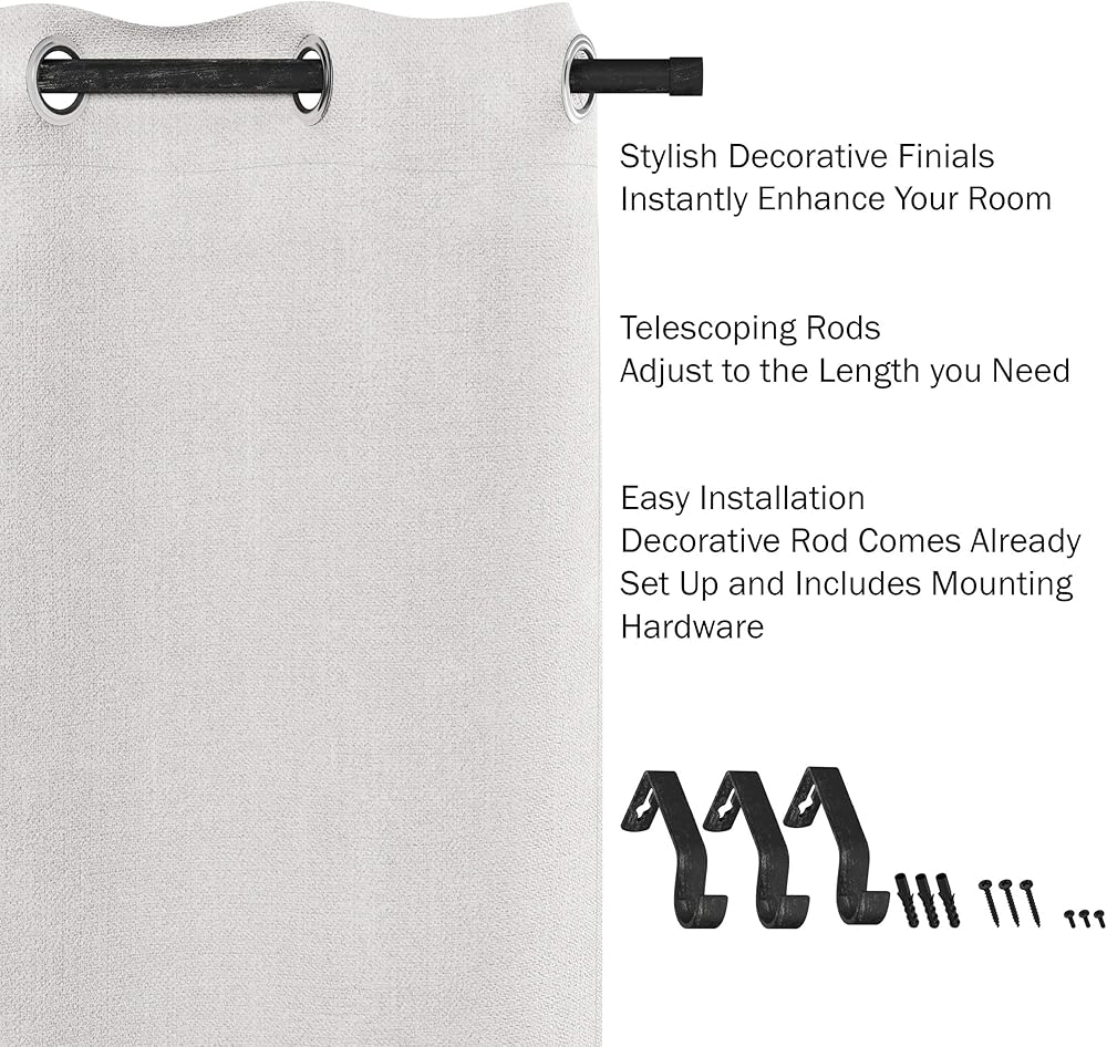• EASY SET UP & INSTALLATION-The decorative curtain rod is packaged already set up - just set the length and install the mounts! This set also comes with all needed mounting hardware including screws, anchors and mounting brackets for easy installation.