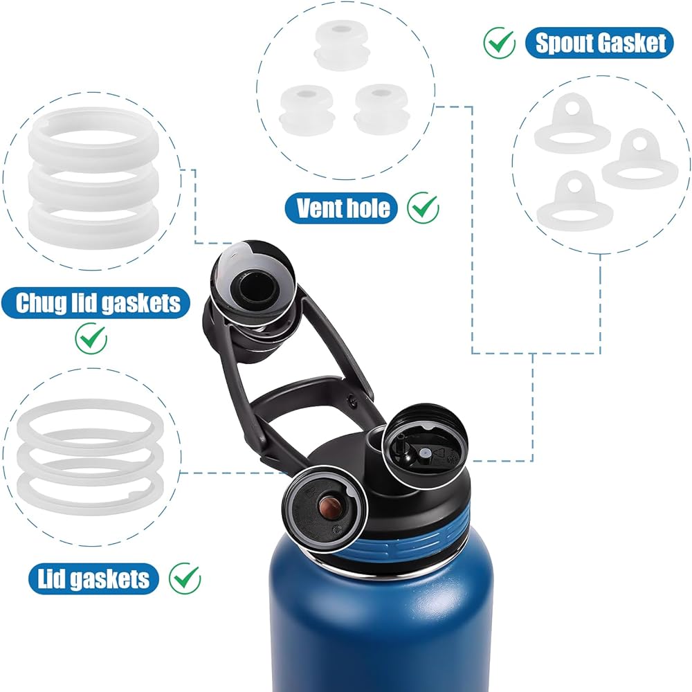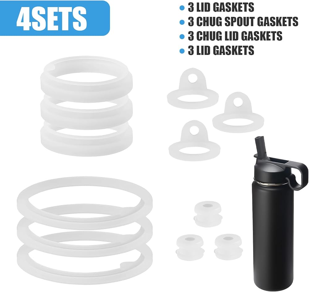 【3 Set, Set of 4】Our 12-Piece Water Bottle Gasket Replacement for Thermoflask has 3 sets, each set include silicone gasket replacement for 1 water bottle straw lid, 1 chug lid, 1 chug spout and 1 vent hole.