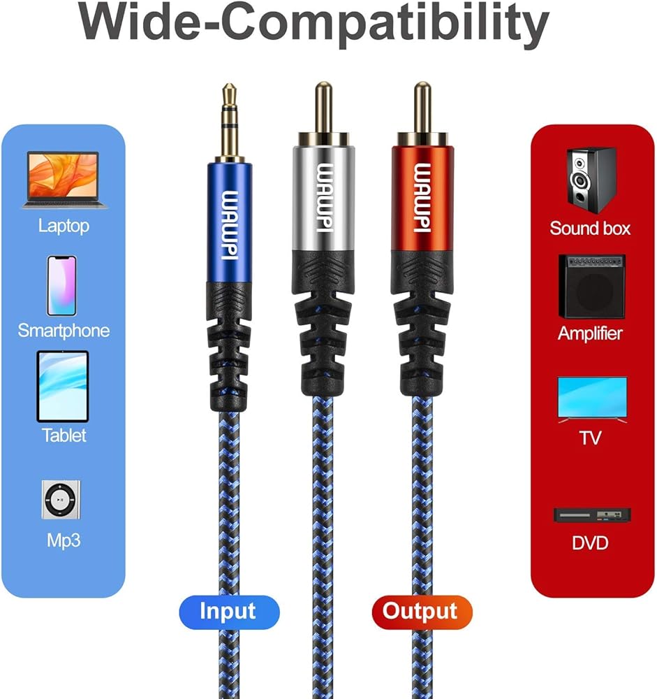 • 💌 【ما تحصل عليه: كابل WAWPI 3.5 مم إلى 2RCA بطول 15 قدم/5 م. ضمان لمدة خمس سنوات من Wawpi وخدمة عملاء ودودة 7*24.
