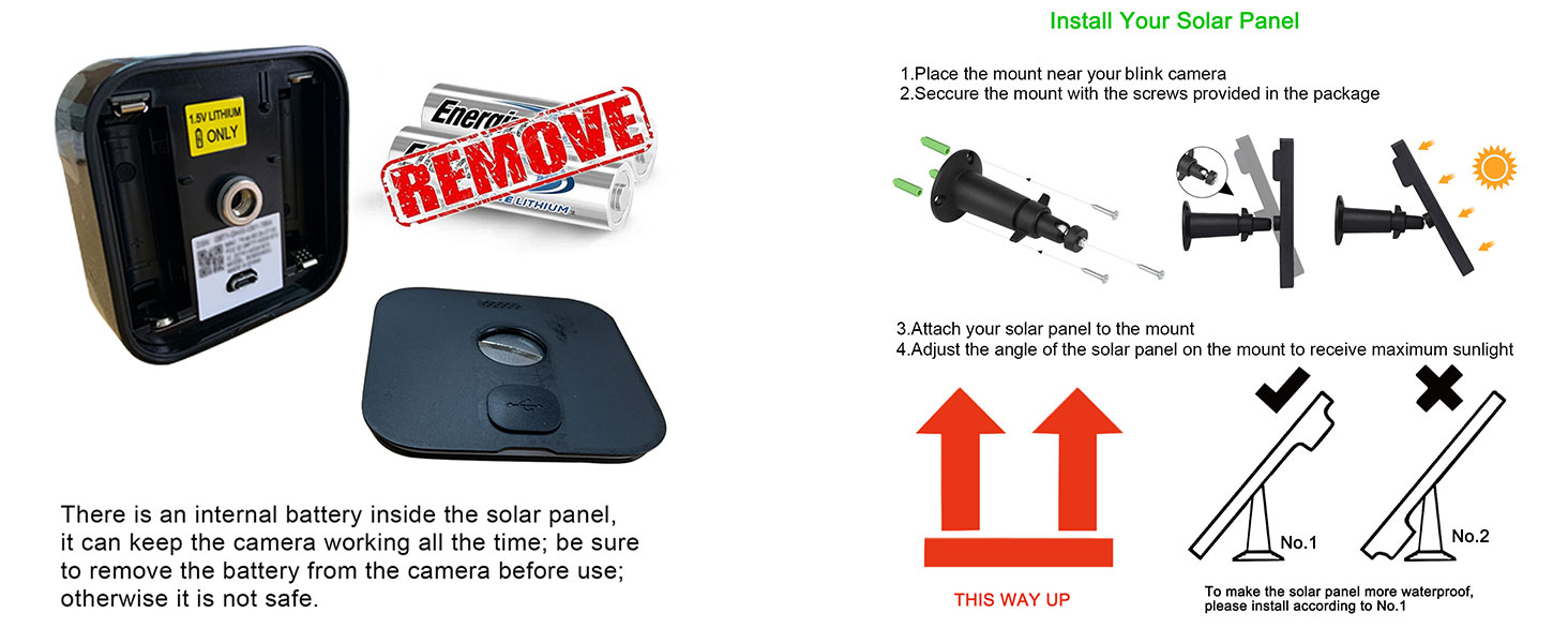 ✔ تصميم مقاوم للماء: سطح اللوحة الشمسية مصنوع من مادة السيليكون أحادية البلورية، والإطار مصنوع من مادة سبائك الألومنيوم، مثالي للماء والغبار وقوي ومقاوم لدرجات الحرارة المنخفضة والعالية. ظروف التشغيل: -4 درجة فهرنهايت إلى 120 درجة فهرنهايت (-20 درجة مئوية إلى 48 درجة مئوية)، لا تقلق من تأثير الميزات الأخرى، قم بتشغيل جهاز Blink XT باستمرار، ولكن أيضًا لجهاز Blink Outdoor 4 (الجيل الرابع)، Blink Outdoor (الجيل الثالث) كاميرا XT3 XT2.