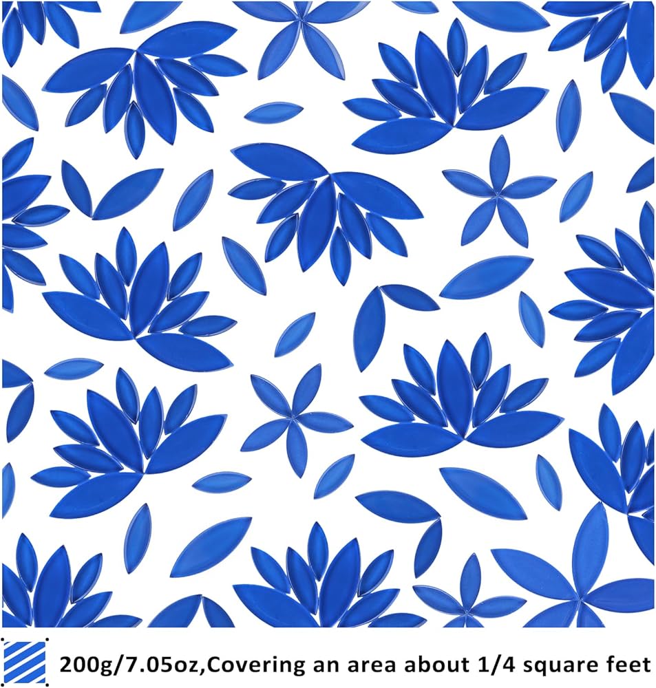 ❖المادة - بلاط الفسيفساء ذو الأشكال المقطوعة لدينا مصنوع من مواد زجاجية، سطح وحواف ناعمة، سمك موحد 4 مم. وهي تتكون من خليط عشوائي من ثلاثة أشكال زجاجية: التاج، والزهور، والقطرة. (هذا المنتج مصنوع من الزجاج، والتي سوف تنكسر حتما بعض الزوايا أثناء النقل).