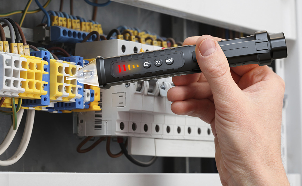 • عدم الاتصال: يوفر جهاز اختبار الجهد الكهربي غير المتصل الطريقة الأبسط والأكثر أمانًا لفحص التيار الكهربائي في الأسلاك أو المنافذ أو المفاتيح أو المصابيح التي توقفت عن العمل لسبب غير مفهوم.