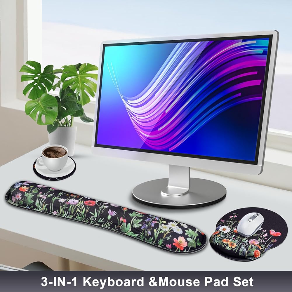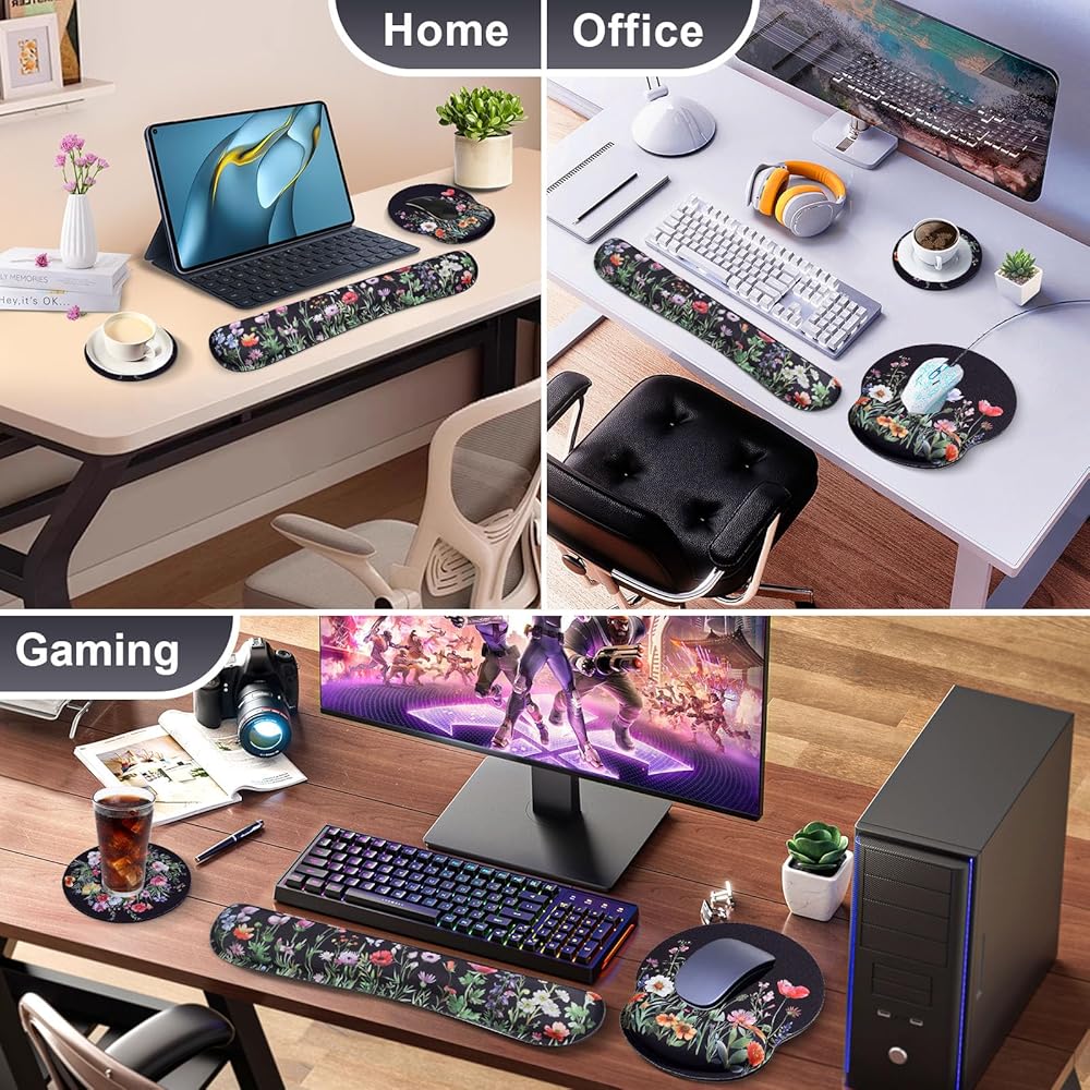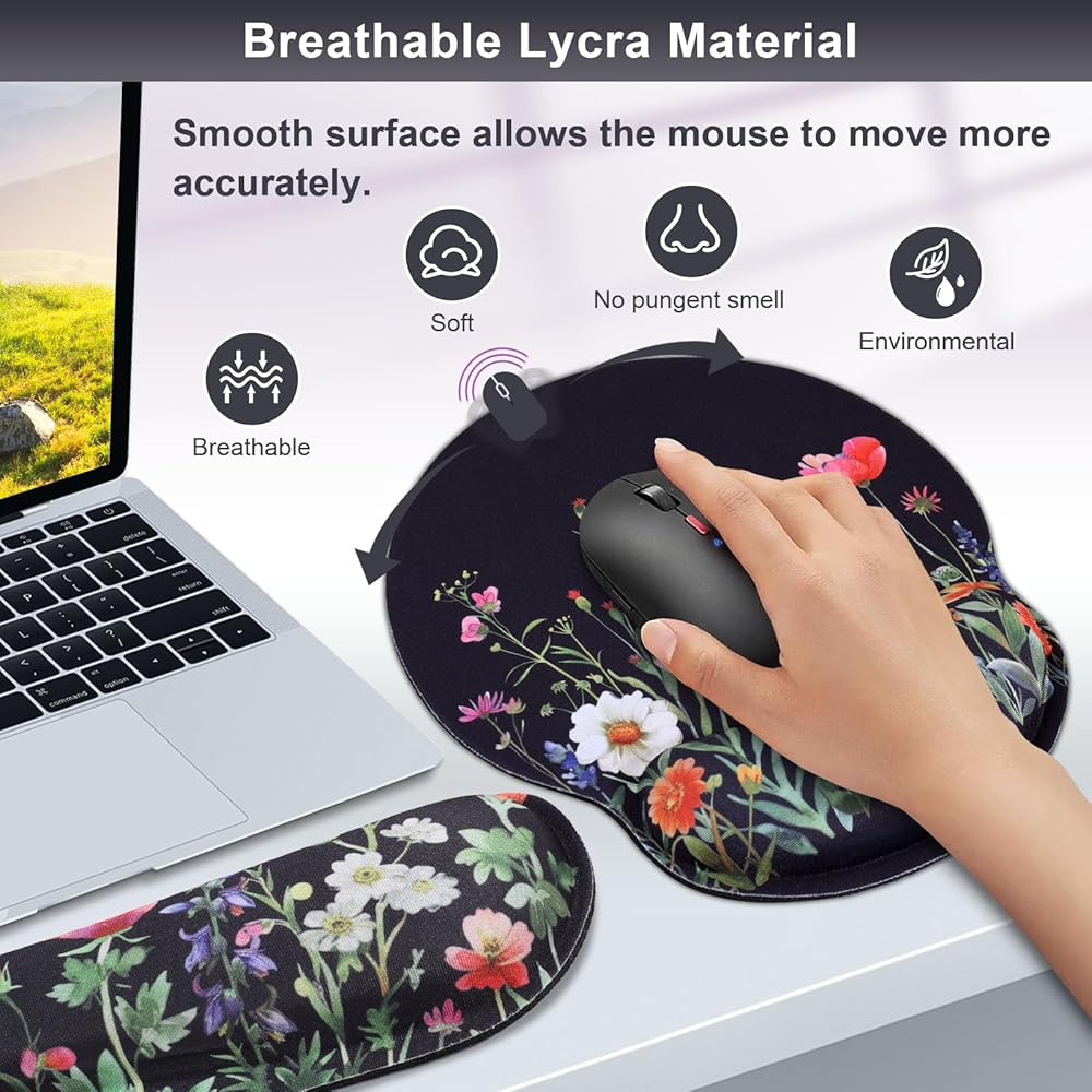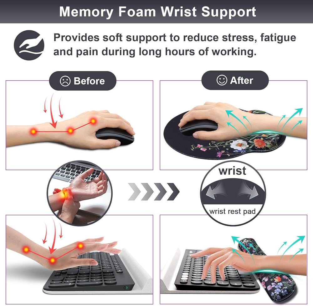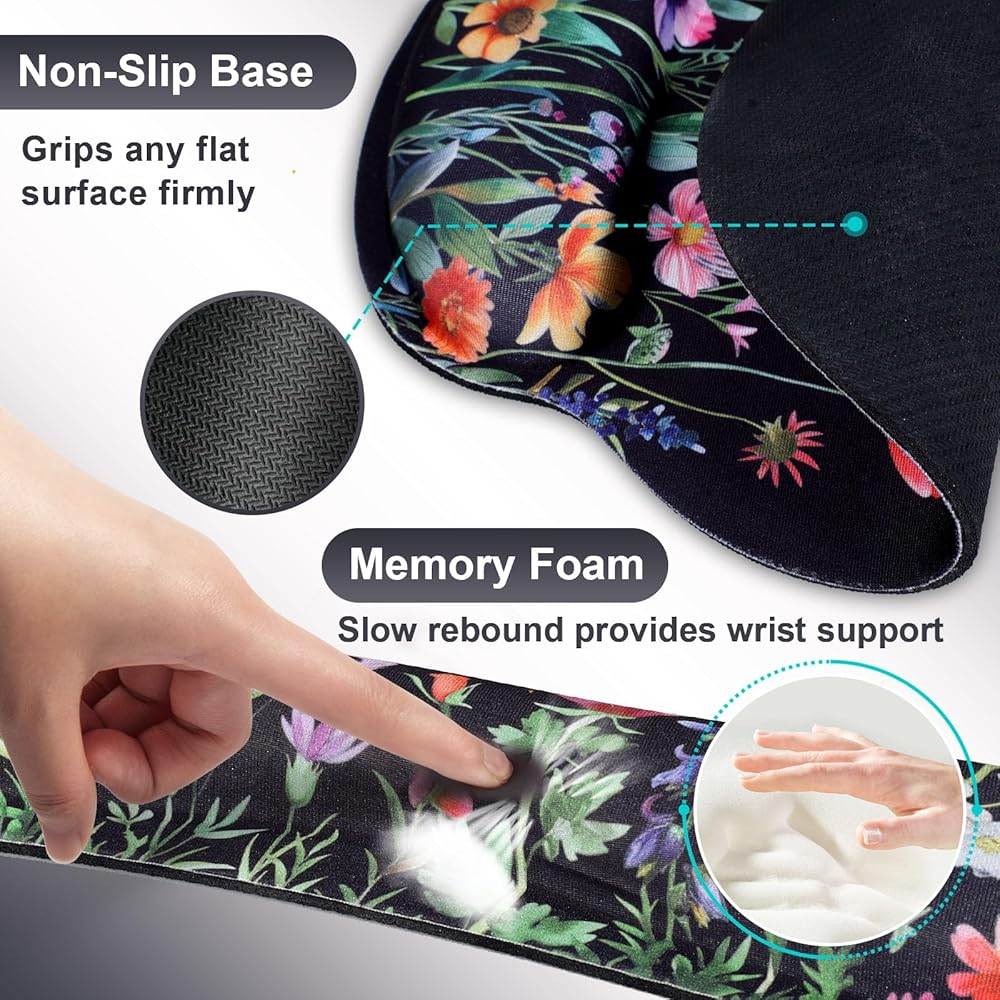 • ⌨️[غير قابلة للانزلاق] تعمل لوحة الماوس الخاصة بنا مع مسند المعصم ولوحة المفاتيح على رفع راحة العمل مع تصميم الزهور البرية ذات الألوان المائية. لوحة ماوس مع مسند للمعصم ولوحة لوحة مفاتيح في الجزء السفلي من المطاط الطبيعي مع مادة غير قابلة للانزلاق تضمن الثبات على سطح المكتب.