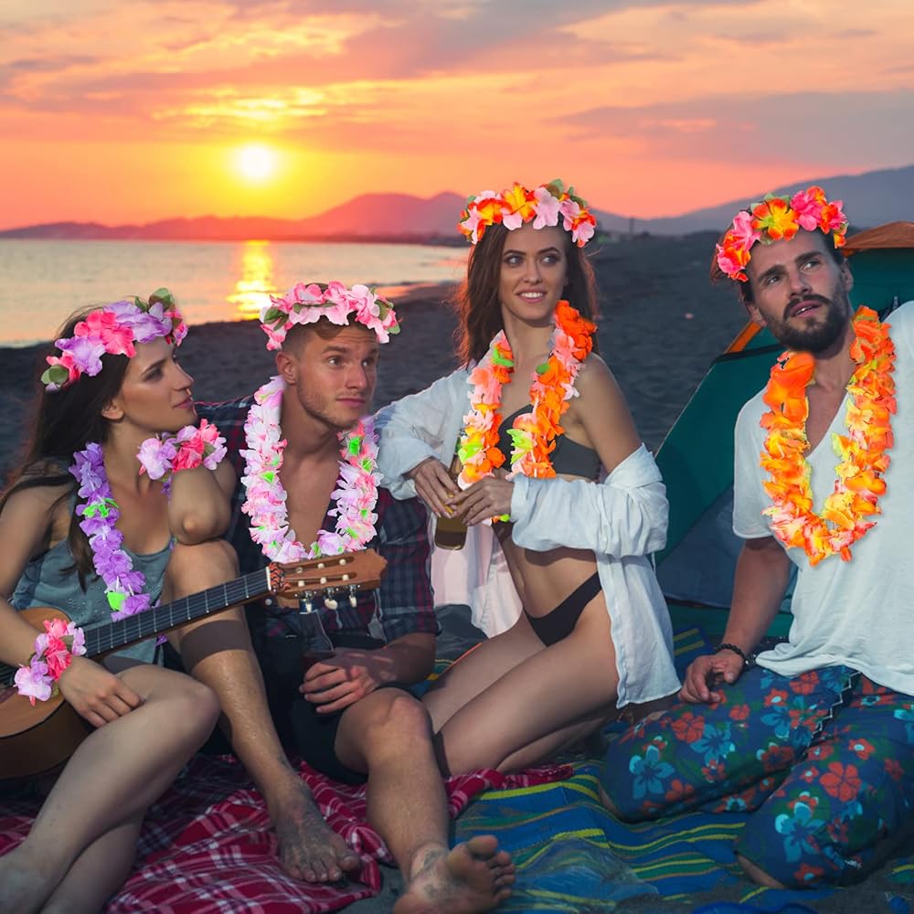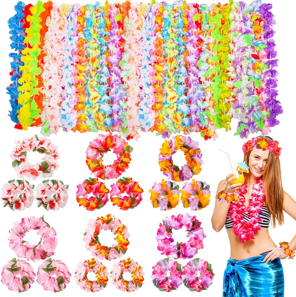 [مجموعة كاملة ومتعددة الألوان]: 72 قطعة من زهرة هاواي بما في ذلك 36 قطعة من القلادة، و12 قطعة من عصابات الرأس و24 قطعة من أساور المعصم، يمكنك اختيار المجموعة الكاملة لارتدائها، وستجعل مجموعتك أكثر جمالاً!