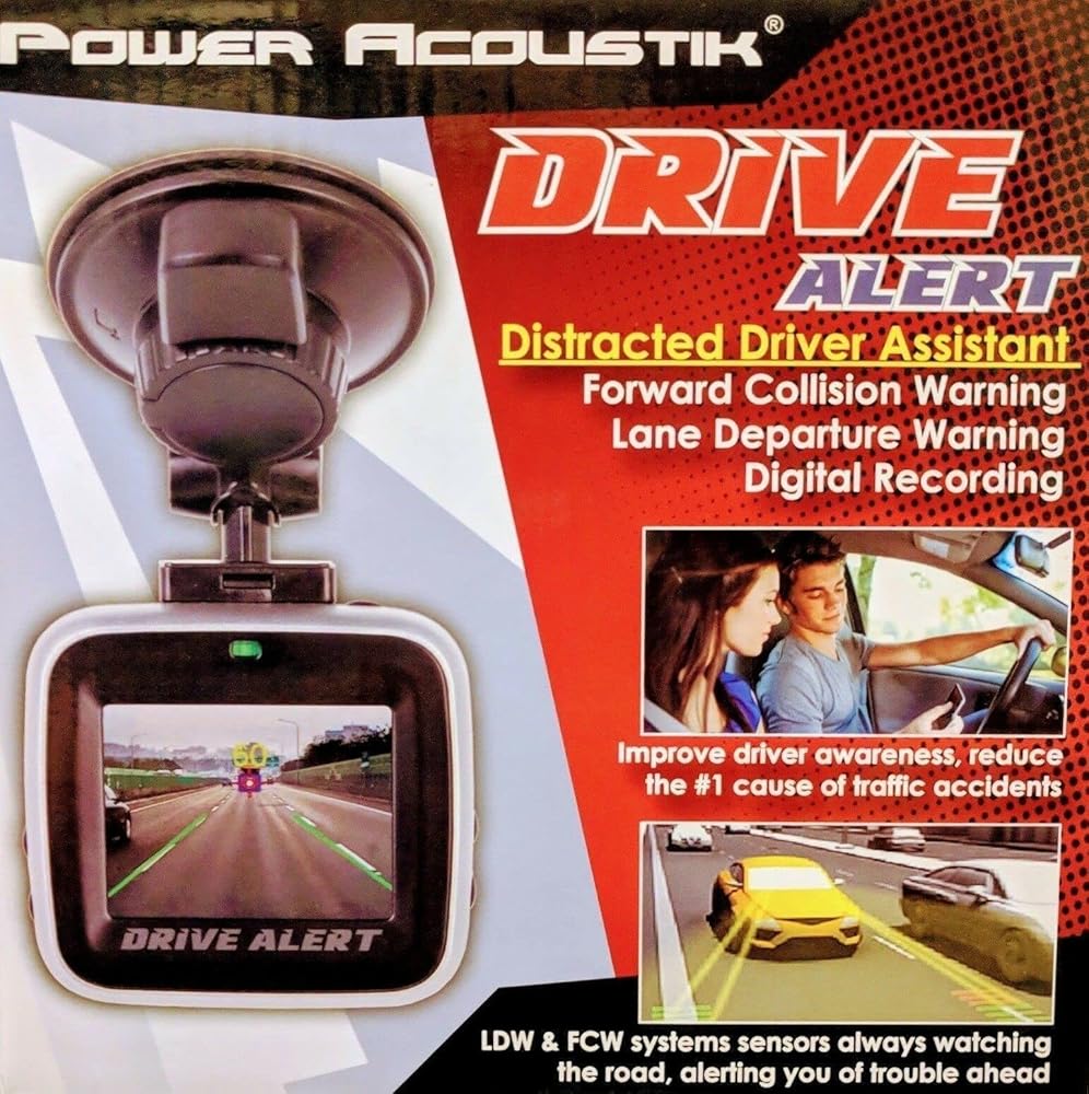 Power acoustics DVALT | lane departure, front collision warning system with DVR |drive alert -distracted driver assistance system w/ forward collision & lane departure warning