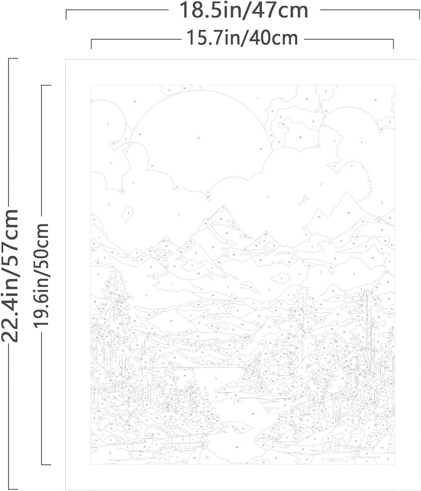 【مجموعة الطلاء بالأرقام】: قماش عالي الجودة (مقاس القماش 18.5 × 22.4 بوصة (47 × 57 سم)، وحجم العمل الفني 15.7 × 19.6 بوصة (40 × 50 سم))؛ نسخة واحدة من ورق القماش المرقم كمرجع؛ فرش ×2 وخطافات وأظافر ×2؛ مجموعة واحدة من طلاء الأكريليك؛ 1 دليل للبطاقات البريدية الملونة.