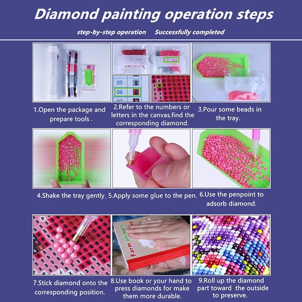 متعددة الوظائف: هل تريد أن تكون حياتك أكثر مرحًا وغنيًا؟ اللوحة الماسية 5D يمكن أن تساعدك! بعد الانتهاء من الفن الماسي، يمكنك الشعور بالإنجاز. مجموعات الرسم الماسي سهلة للجميع سواء كانوا بالغين أو أطفال. تعتبر اللوحة الماسية DIY طريقة جيدة لتنمية قدرة الأطفال العملية وصبرهم.