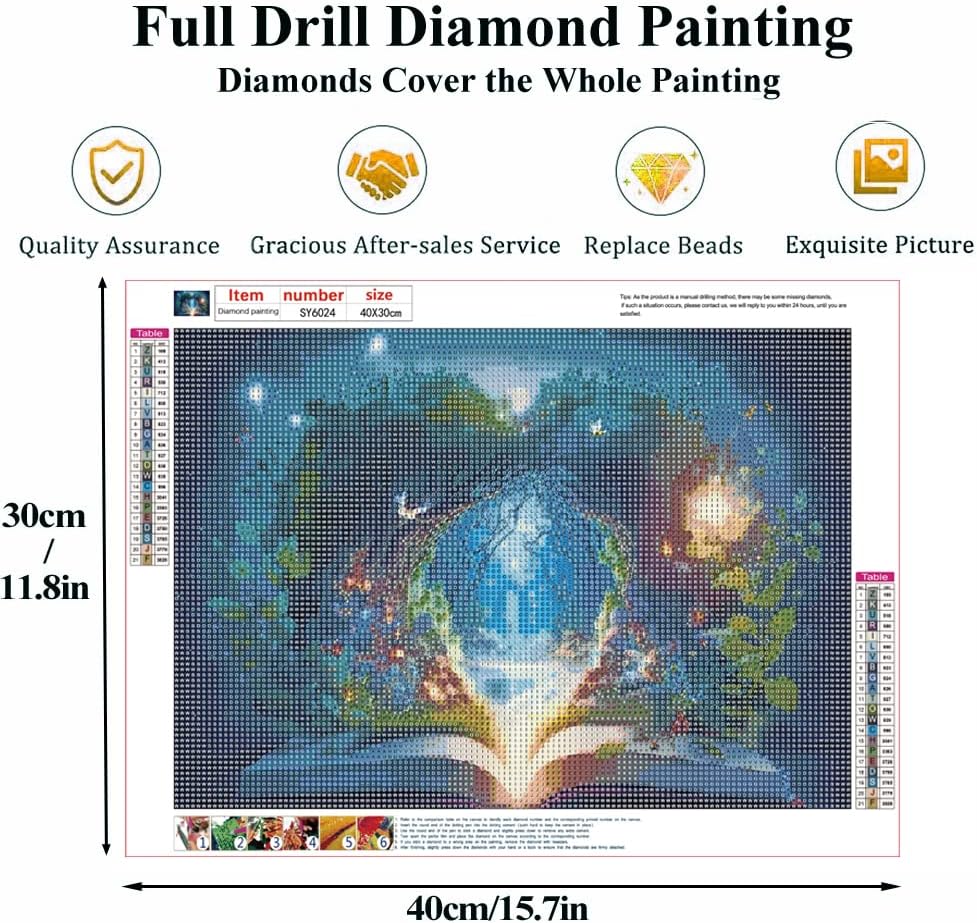 العبوة: كل مجموعة من أدوات الرسم الماسي تأتي مع كل ما تحتاجه للبدء! قماش لاصق ممتاز من I مع أسطورة مطبوعة، ومثقاب ماسي دائري 5D في عبوة تحمل علامة، وقلم واحد لوضع الماس، و1 شمع لالتقاط الماس باستخدام قلم توزيع، وصينية واحدة لحمل الماس.