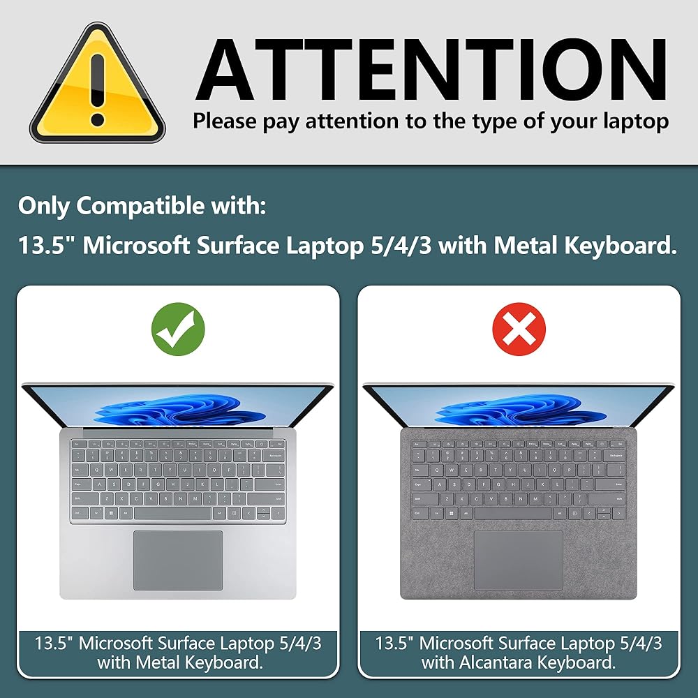 【Easy Installation & Removal】 – For 13.5" Microsoft Surface Laptop 5/4/3 Laptop with Metal Keyboard Case - Our protective case has micro clips that securely fastens to your laptop, and snaps off with easy when needed.