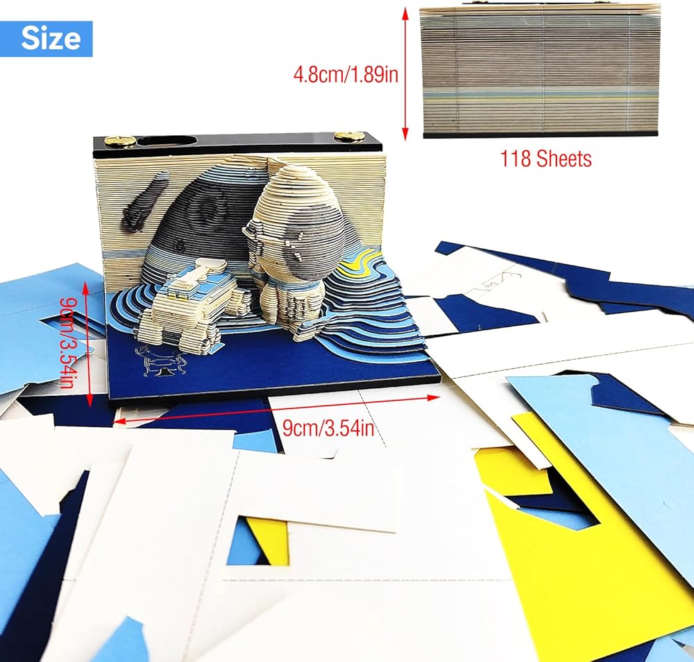 عملي: التقويم الفني ثلاثي الأبعاد هو دفتر ملاحظات مثالي لتذكيرك بالأشياء المهمة في العمل. يمكنها أيضًا حمل الأقلام. تخفيف التوتر عند تمزيق الأوراق واحدة تلو الأخرى.