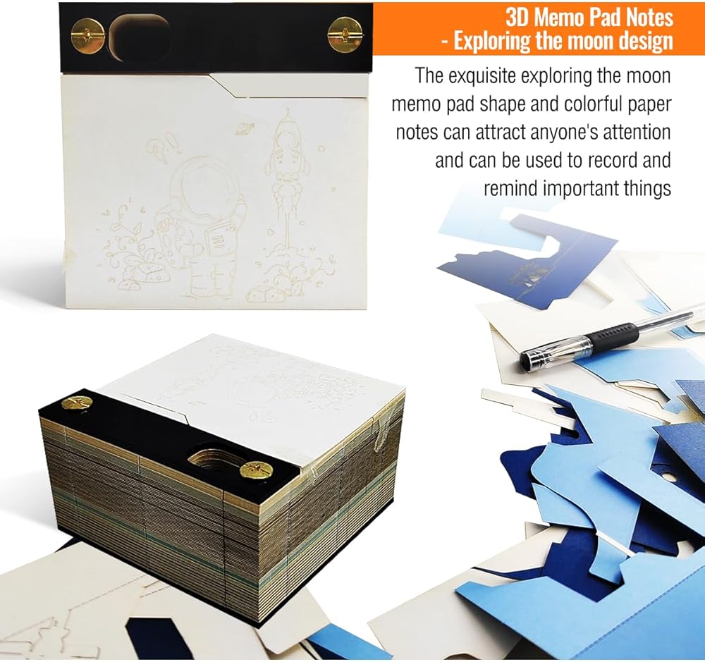 زخرفة مثالية: كل ورقة من لوحة المذكرات ثلاثية الأبعاد لرجل الفضاء لها صورة ظلية مختلفة. يمكنك تمزيقها لتزيين طاولتك أو استخدامها كإشارات مرجعية، وهو أمر مبتكر للغاية.