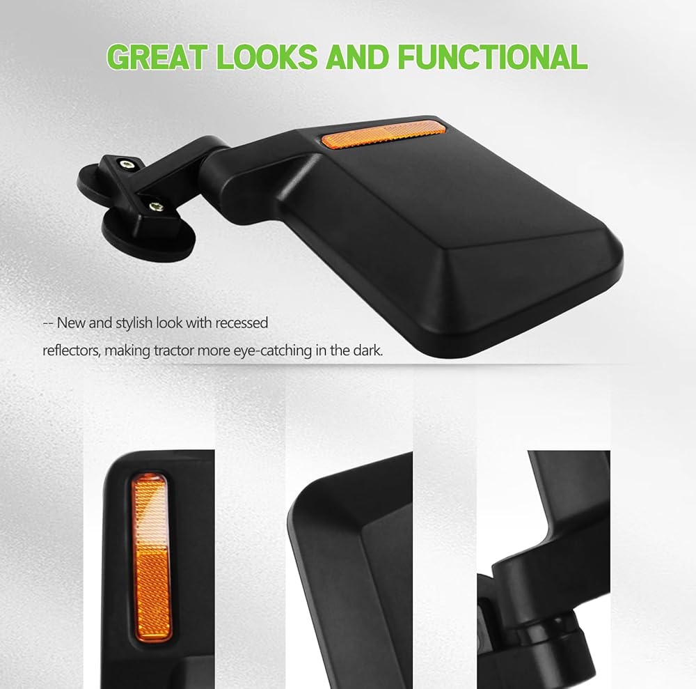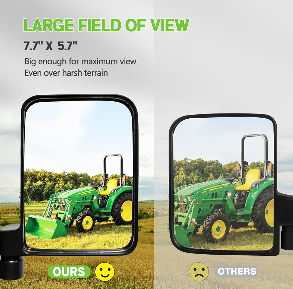 مجال رؤية كبير - أبعاد المرآة هي 5.7 بوصة عرض × 7.7 بوصة طول، مع تصميم أنيق وأنيق يبدو رائعًا على جميع الجرارات، وكبيرة بما يكفي لتحقيق أقصى قدر من الرؤية، حتى على التضاريس القاسية.