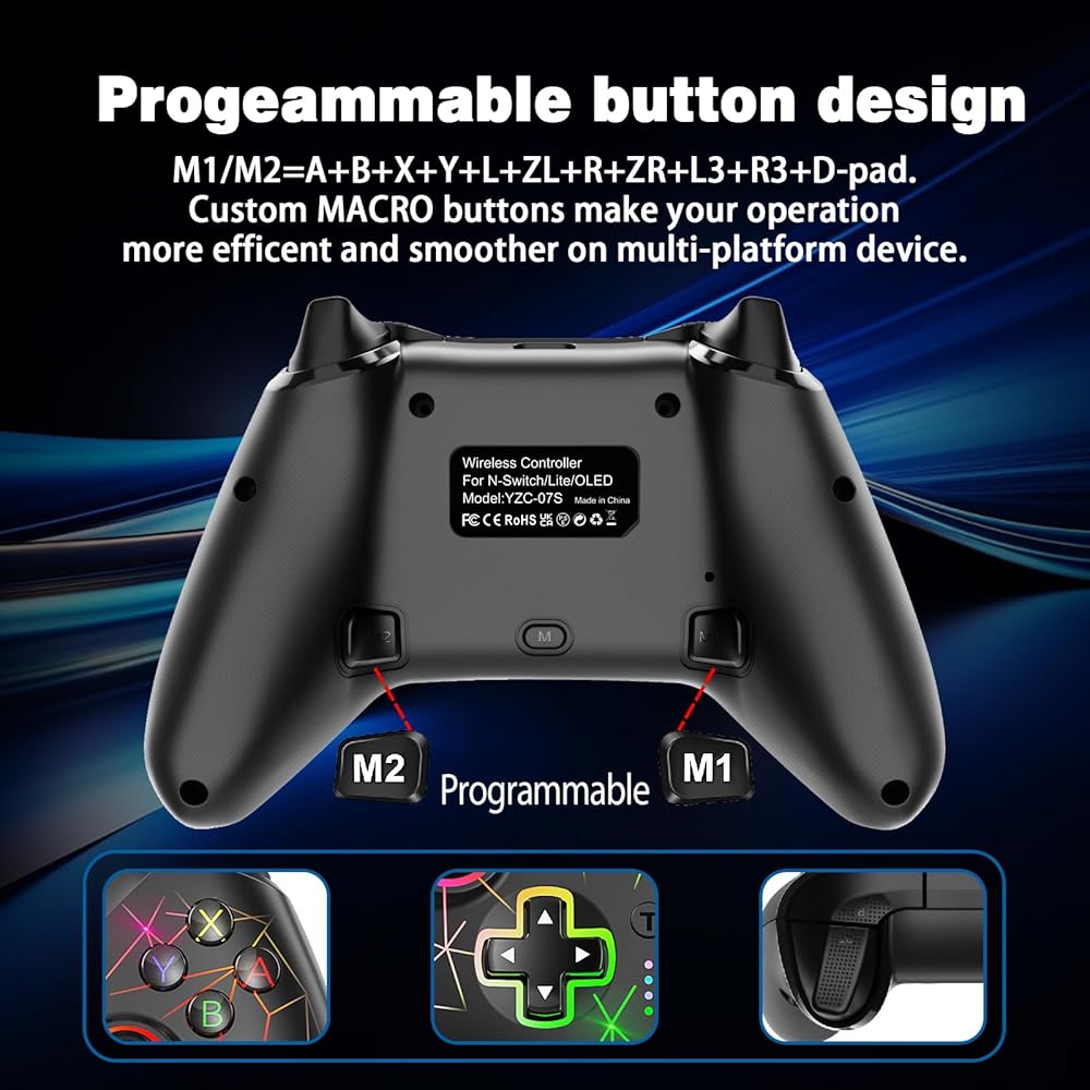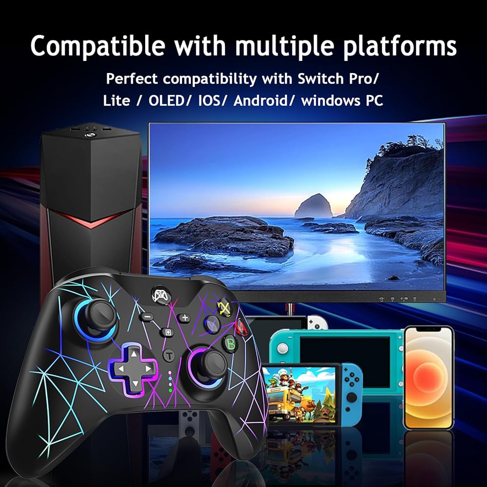متعددة الوظائف - وحدة التحكم الخاصة بنا متوافقة على نطاق واسع مع Switch/Switch Lite/Switch OLED/iOS/Android/PC Windows 7/8/10/11. سهل الاقتران بالجهاز، اتصال سريع، إعداد بسيط. (لا يدعم وظيفة NFC)
