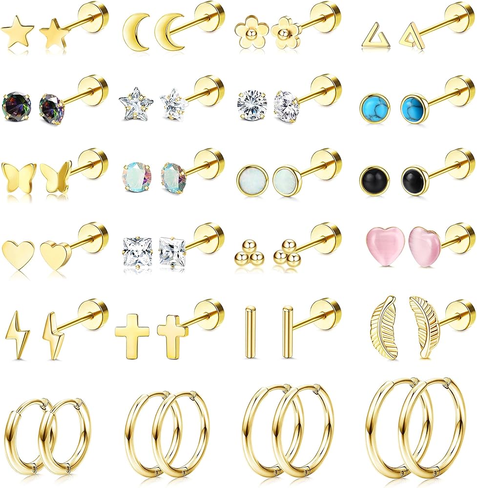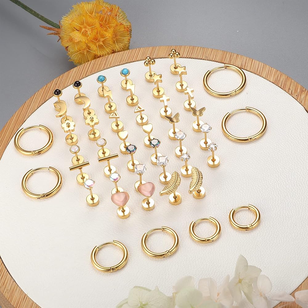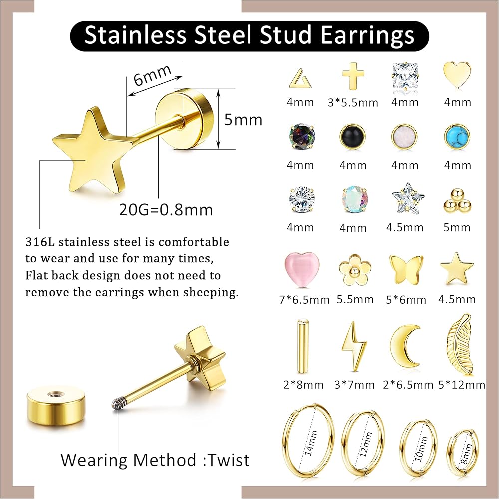 • 💕أقراط خلفية مسطحة: يتضمن طلب واحد 24 زوجًا من الأقراط المصنوعة من الفولاذ المقاوم للصدأ بأنماط مختلفة، توجد أقراط مسمارية على شكل غضروف زركونيا مكعبة، وأوبال، ونجمة، وقمر، وفراشة، ومثلث، وزهرة، وقلب، وأقراط لولبية خلفية على شكل أوراق الشجر، وأقراط حلقية غضروفية وما إلى ذلك. من الأقراط العصرية تعبر بشكل أفضل عن شخصيتك وتبرز جمالك، والتي يمكن أن تتماشى مع ملابسك في أي مناسبة.