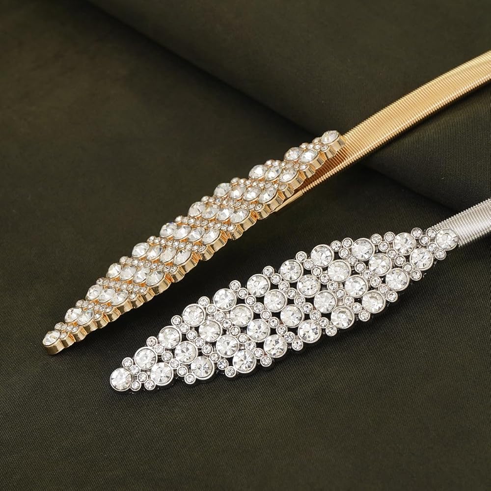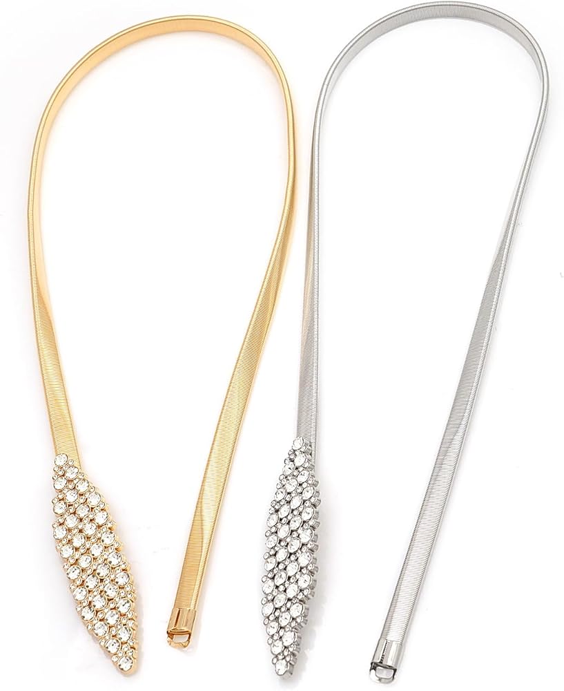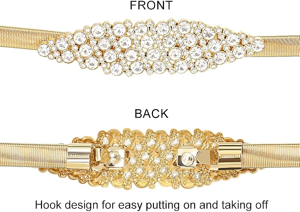 Style: The set contains elastic waistbands with defferent design. The diamonds on the buckles make you shine more in the crowd. You can choose a belt to wear according to your mood