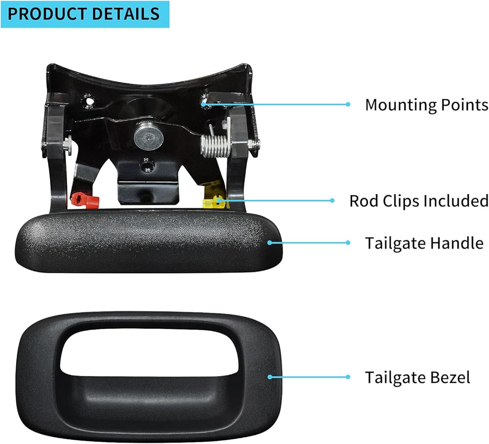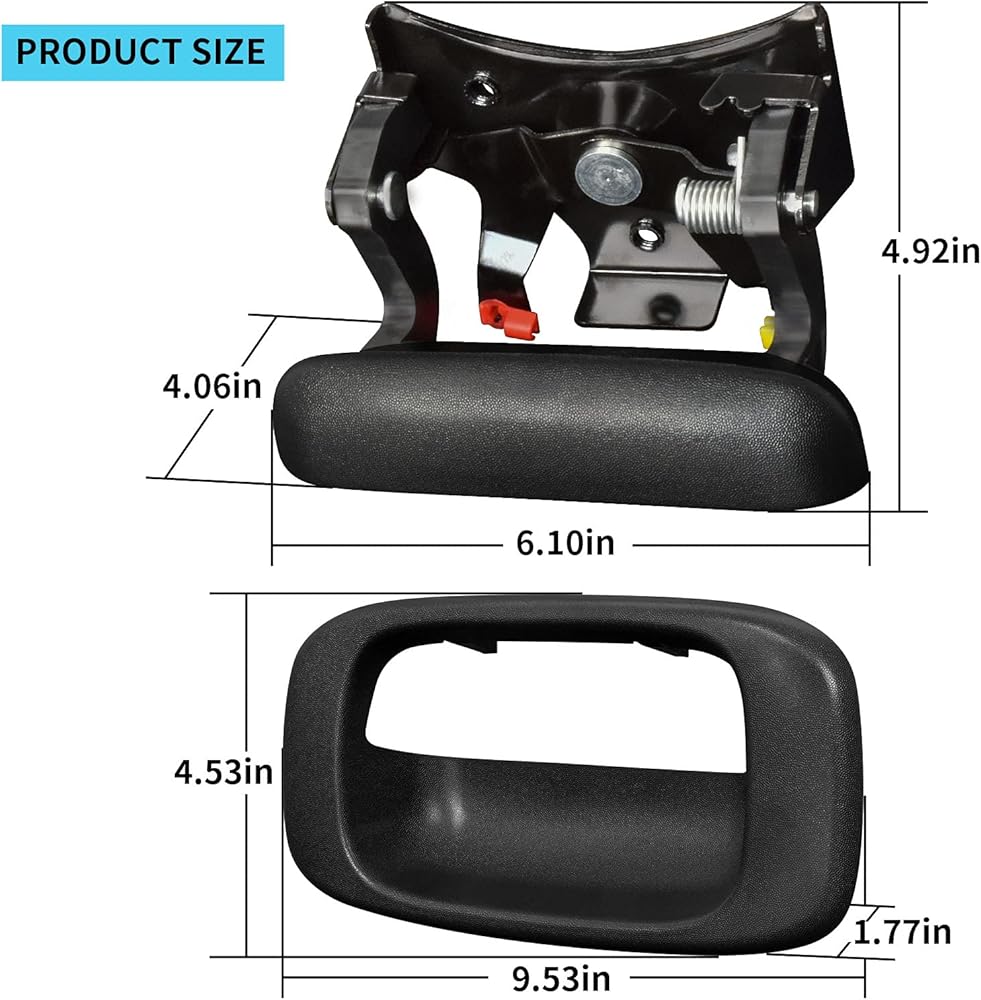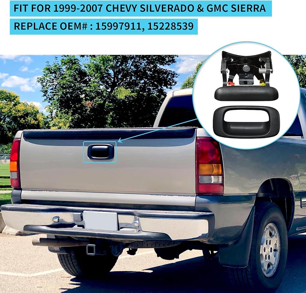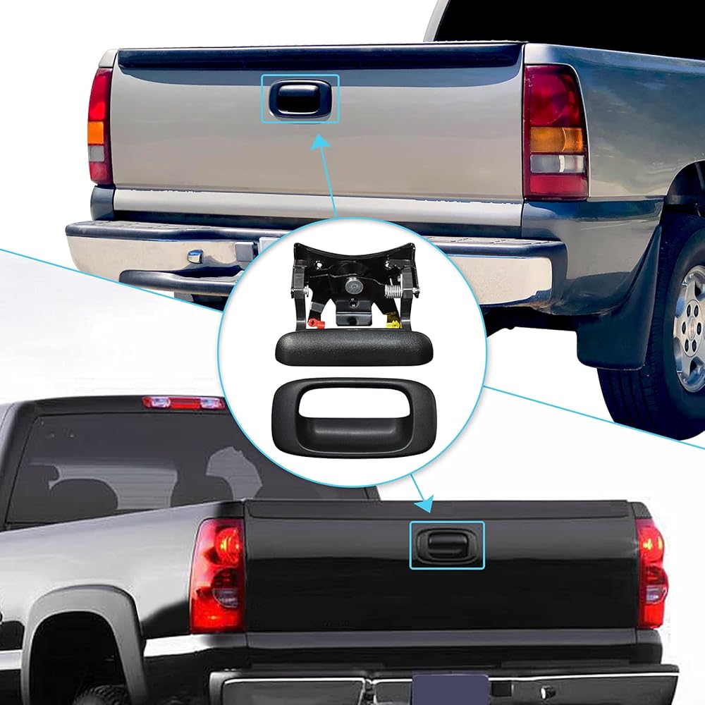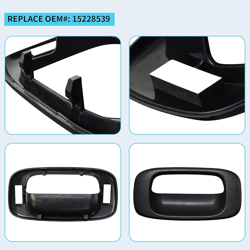 التوافق - يتوافق مقبض الباب الخلفي وإطار الإطار مع المركبات التالية: 1999-2007 GMC Sierra & Chevy Silverado 1500، 2001-2007 GMC Sierra & Chevy Silverado 1500HD، 1999-2004 GMC Sierra & Chevy Silverado 2500، 2001-2007 GMC Sierra & Chevy Silverado 2500HD, 2001-2007 GMC Sierra & Chevy Silverado 3500. يرجى ملاحظة أنه غير متوافق مع موديلات Chevy Silverado SS أو Sierra Denali أو C3.