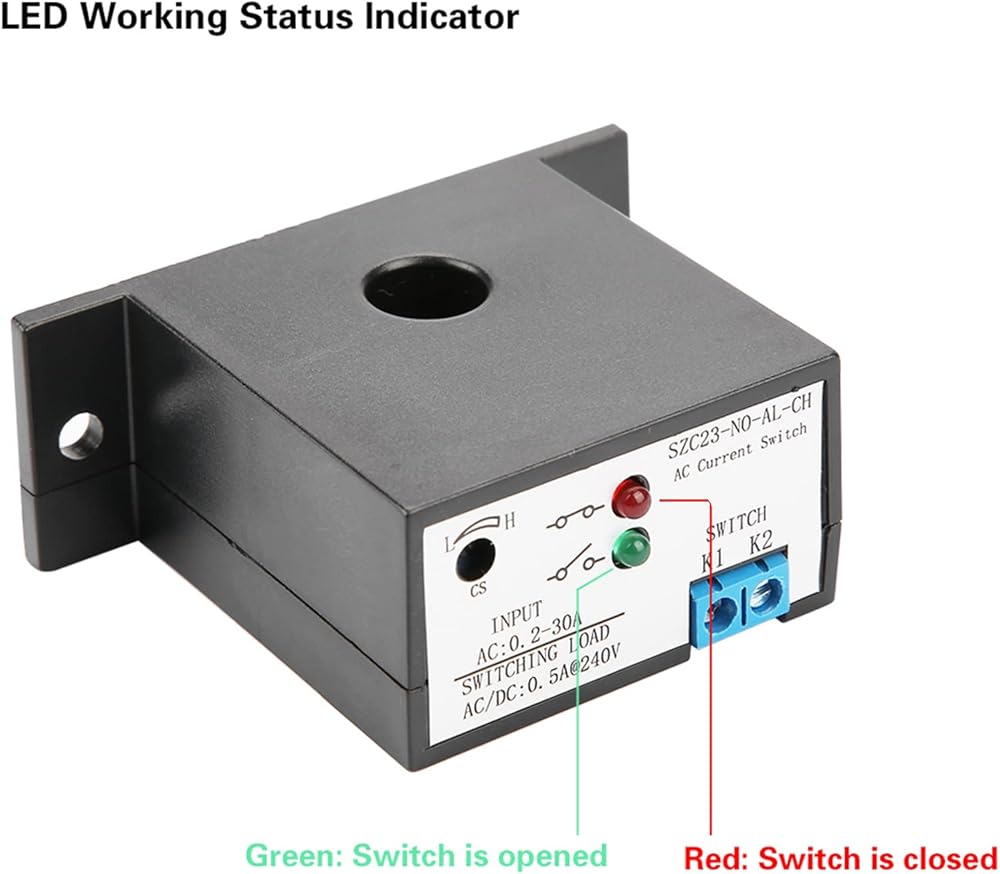SZC23 series AC current sensing switch is designed and manufactured to solve the AC current monitoring. It uses the principle of mutual inductance to sense the AC straight-through current, isolate the AC current, and output a normally open or normally closed switching to directly control various automation industrial equipment, such as flash, buzzer, relay, single-chip or other power load equipment. Compared with traditional mutual inductors, thermal protectors and other devices, using this device can not only get more accurate and more timely control, but can also greatly simplify the design and reduce costs.