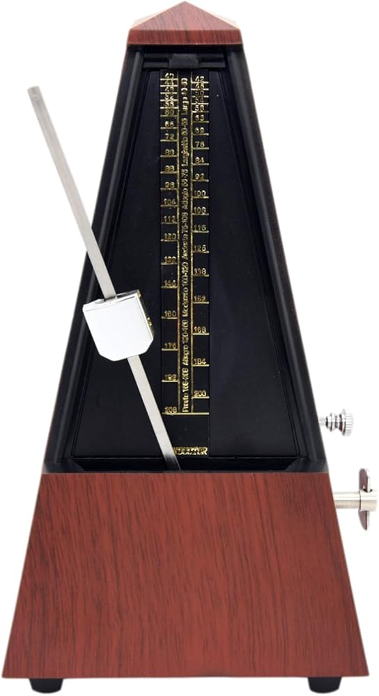 تصميم كلاسيكي بنمط هرمي: ميترونوم ميكانيكي، يتميز بندول في المنتصف يكمل هذا المظهر الكلاسيكي الذي يحبه جميع الموسيقيين. يمكن استخدامها لممارسة البيانو والكمان والجيتار والباس والطبل وغيرها من الآلات الموسيقية. ميترونوم للبيانو، إنها آلية زنبركية قابلة للالتفاف تمنح ميترونوم القوة التي تحتاجها لخلق الطاقة لإنتاج نبضات عادية ومترية. هذا المنتج اقتصادي ومصمم ليدوم دون الحاجة إلى إنفاق المال على البطاريات لتشغيله.