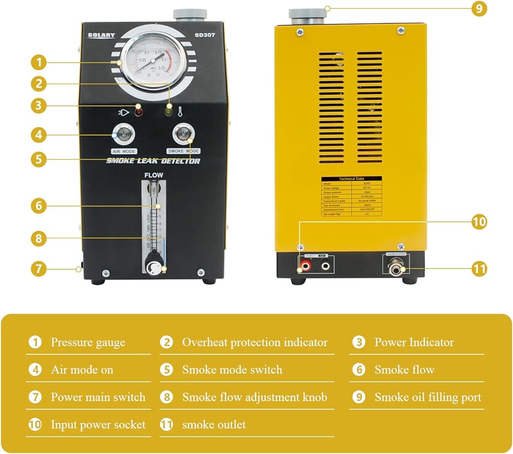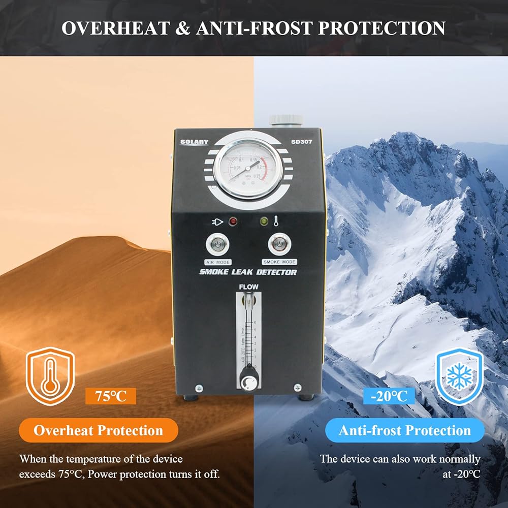 [سهل الاستخدام] يأتي جهاز اختبار دخان السيارات مزودًا بخطاف يسمح لك بتعليقه على مزلاج غطاء محرك السيارة. فقط أضف 20 مل من زيت الأطفال أو الزيوت المعدنية، ثم قم بتوصيل الكاشف ببطارية DC12V، يمكنها إخراج دخان سميك في غضون 20 ثانية بعد التشغيل، ويكشف إخراج الدخان السميك حتى أصغر التسريبات.