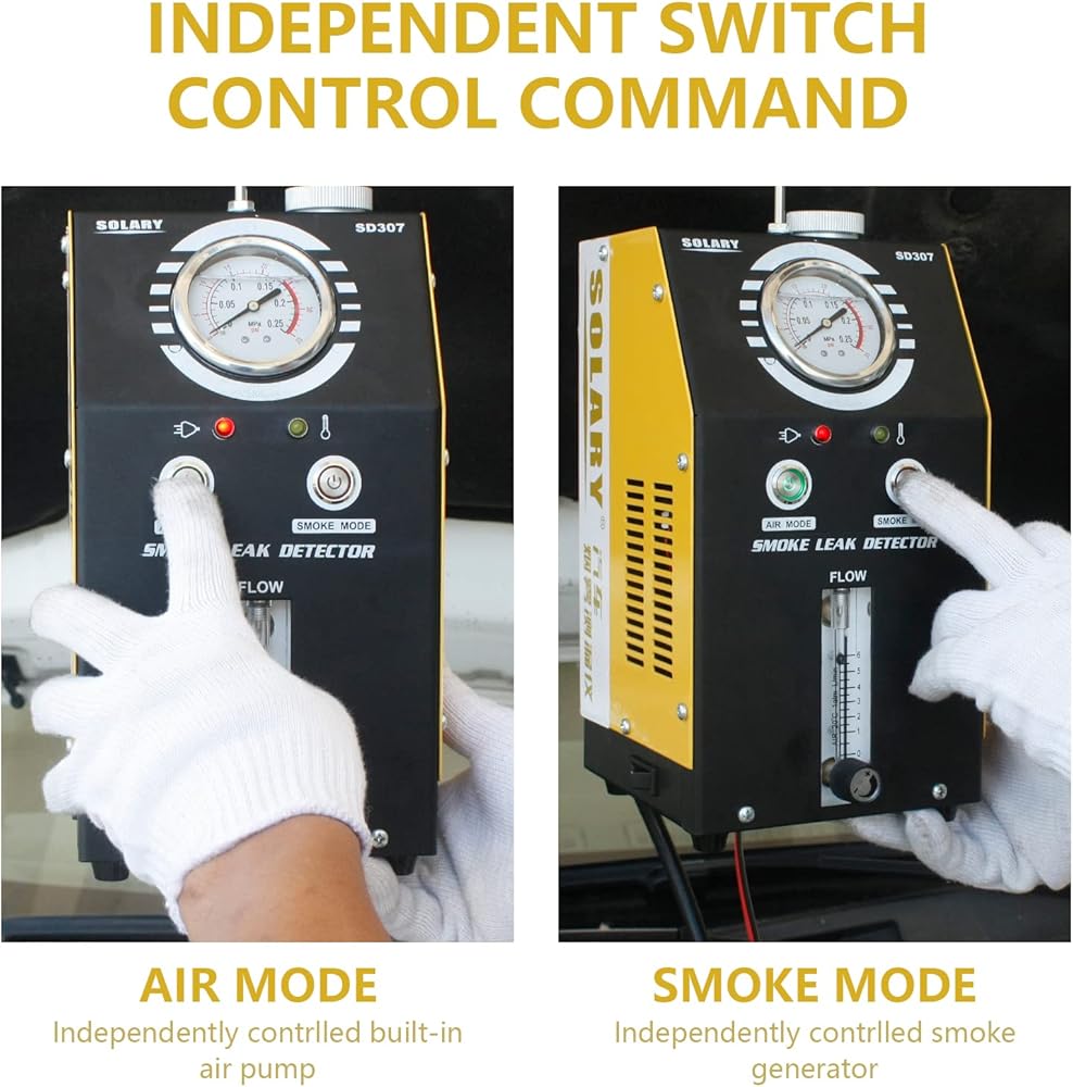 [وضع الهواء ووضع الدخان] يحتوي كاشف تسرب الدخان على وضع الهواء ووضع الدخان، ويمكن التحكم في الوضعين بشكل مستقل. مضخة هواء مدمجة ومولد دخان، لذلك لا تعتمد على آلة هواء إضافية. تصميم مدمج وخفيف الوزن، مناسب للحمل عند الخروج للعمل، مثالي لإصلاح السيارات المتنقلة!