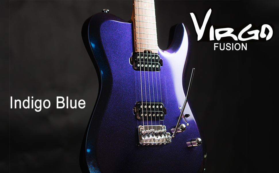 M MUSI Virgo Fusion Electric Guitar Coil Split Humbucker Pickup القيثارات الكهربائية ذات الجسم الصلب، نهاية مستديرة من الفولاذ المقاوم للصدأ، جسم الماهوجني، رقبة القيقب المحمص، لموسيقى الروك/البلوز/الجاز، VF