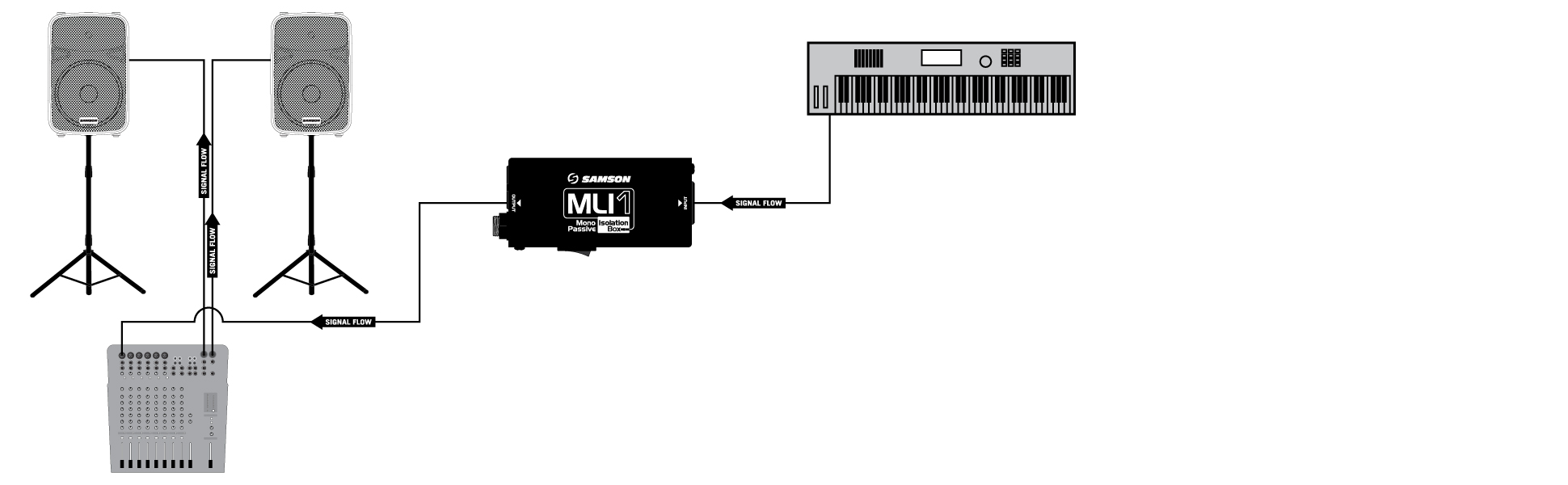 جهاز سامسون ام ال اي 1 هو صندوق عزل سلبي بمستوى الخط مصمم لإزالة الزهر والطنين الناتج عن الحلقات الأرضية، بالإضافة إلى تحويل الإشارات غير المتوازنة إلى إشارات متوازنة من أجل تشغيل الكابلات الطويلة. يجمع MLI1 بين دائرة الصوت الممتازة والهيكل المتين القابل للطرق، ويوفر حلول اتصال إشارة عالية الجودة لتطبيقات البث المباشر والاستوديو.
