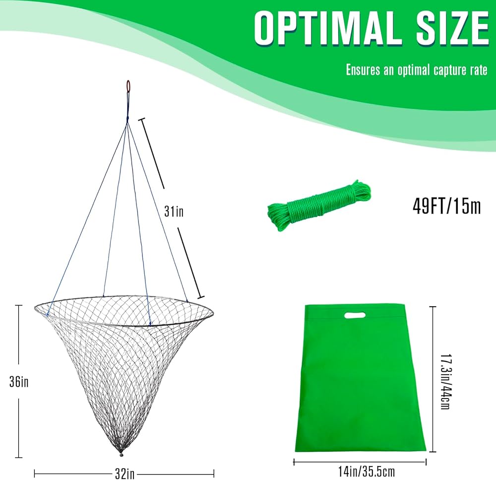 🐟الحجم الأمثل: تم تصميم شبكة الصيد المزودة بحبل بدقة للصيادين، مما يحقق التوازن المثالي بين سهولة الحمل والوظيفة. مع الحد الأقصى للقطر 32 بوصة عند الفتحة، والحد الأقصى للارتفاع 36 بوصة، وطول السلك 31 بوصة، يضمن هذا التصميم المصمم بعناية معدل التقاط مثالي. مثالية لعشاق الصيد على الرصيف من جميع مستويات المهارة، شبكة الرصيف الخاصة بنا تعدك بتجربة صيد مجزية وفعالة في كل مرة تقوم فيها بإلقاء خطك.