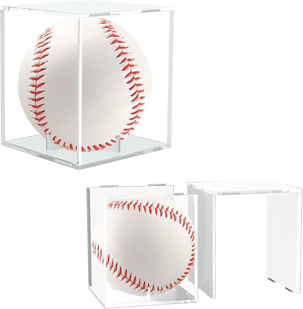 حافظة عرض بيسبول مكونة من قطعتين، حافظة حامل بيسبول محمية من الأشعة فوق البنفسجية مكعب أكريليك مربع شفاف حافظة عرض توقيع البيسبول الرسمية صندوق عرض تذكارات للبيسبول بالحجم الرسمي