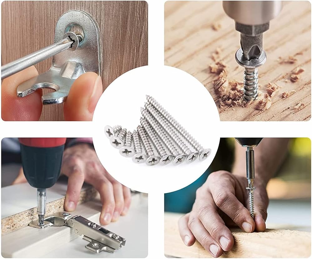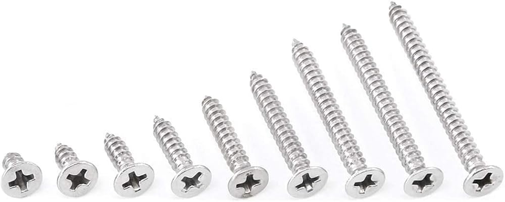 240 قطعة #6 × 5/16 بوصة، 3/8 بوصة، 1/2 بوصة، 5/8 بوصة، 3/4 بوصة، 1 بوصة، 1-1/4 بوصة، 1-3/8 بوصة، 1-1/ مسامير حفر ذاتية التنصت برأس مسطح/غاطس من الفولاذ المقاوم للصدأ 304 مقاس 2 بوصة، مجموعة متنوعة من مسامير الخشب M3.5