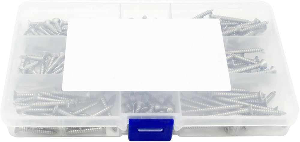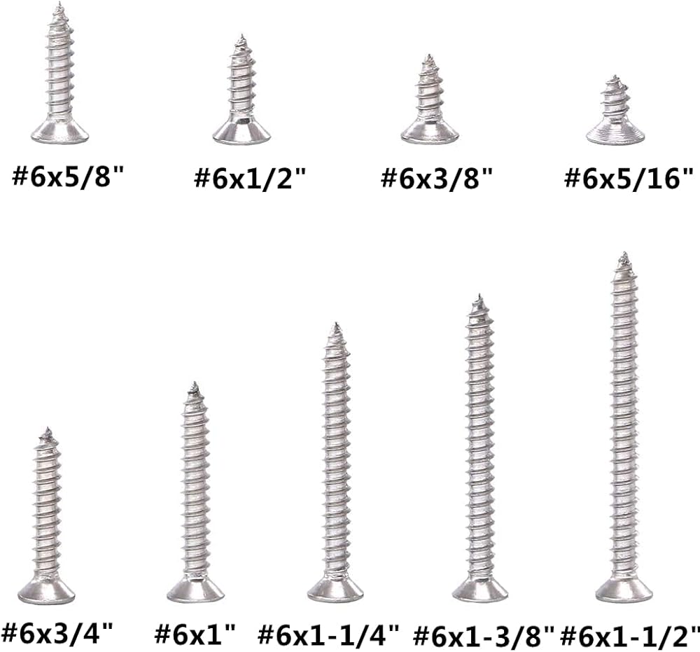 • Screws Length Contain: #6x5/16",3/8", 1/2", 5/8",3/4", 1", 1-1/4",1-3/8" 1-1/2", (Length is measured from the top of the head),Total 240PCS.All contained in a sturdy and transparent plastic box, can be use for a storage box. Easy to install and durable to use.