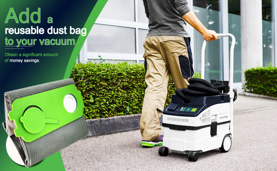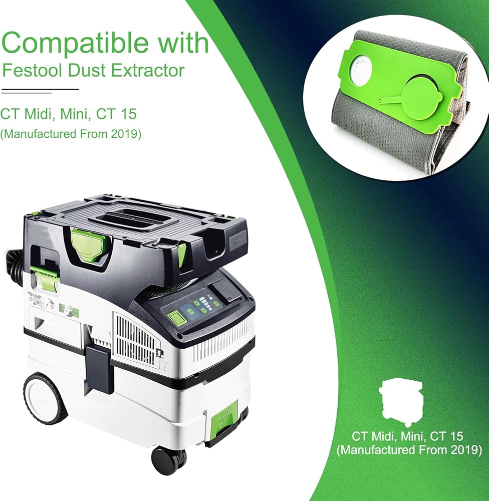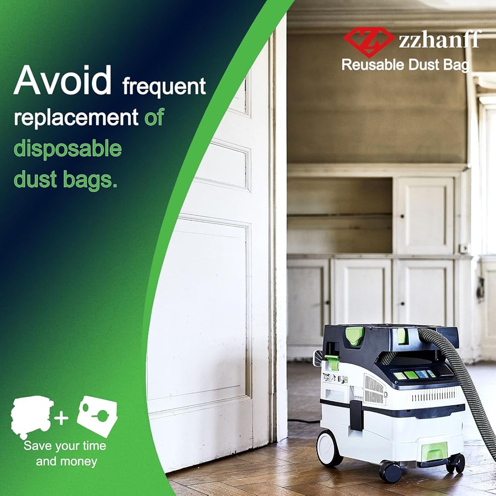 كيس غبار طويل العمر قابل لإعادة الاستخدام - قماش مكون من 4 طبقات، يناسب شفاط الغبار Festool - CT Midi وMini وCT 15 تم تصنيعه في عام 2019. (بواسطة ZZHANFF)