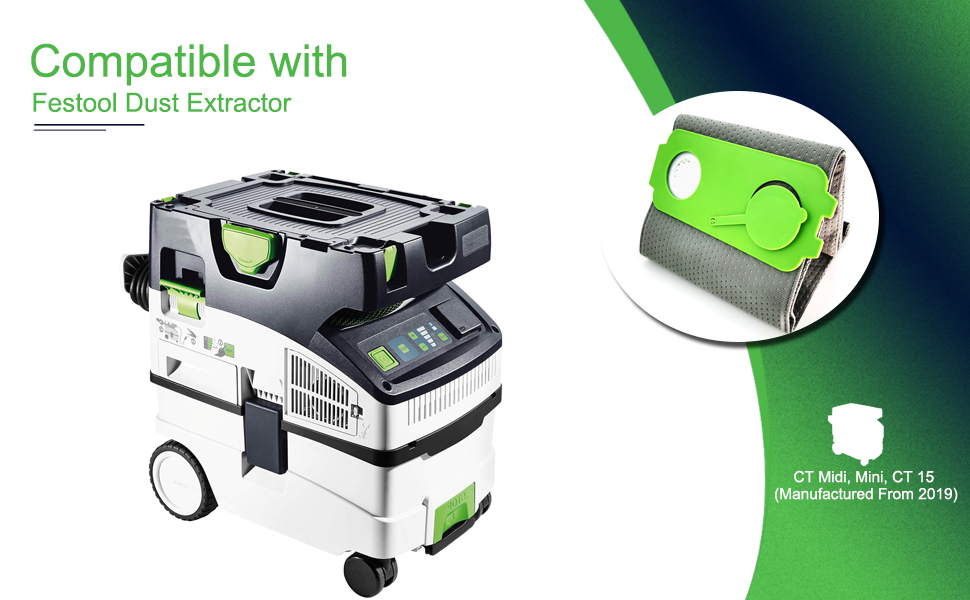 [نماذج متوافقة] مصممة لمكنسة Festool - CT Midi وMini وCT 15 تم تصنيعها عام 2019. (يرجى التأكد من صحة طراز مجمع الغبار الخاص بك قبل الشراء.)