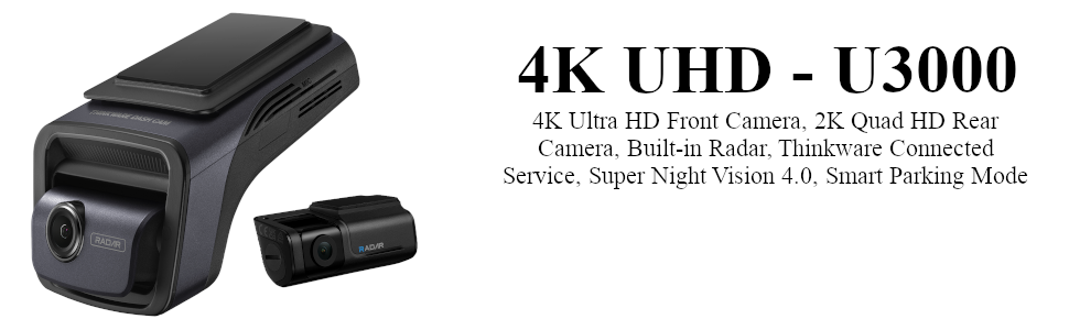 كاميرا Thinkware U3000 4K UHD ثنائية القناة + بطاقة ذاكرة microSD سعة 64 جيجابايت و256 جيجابايت