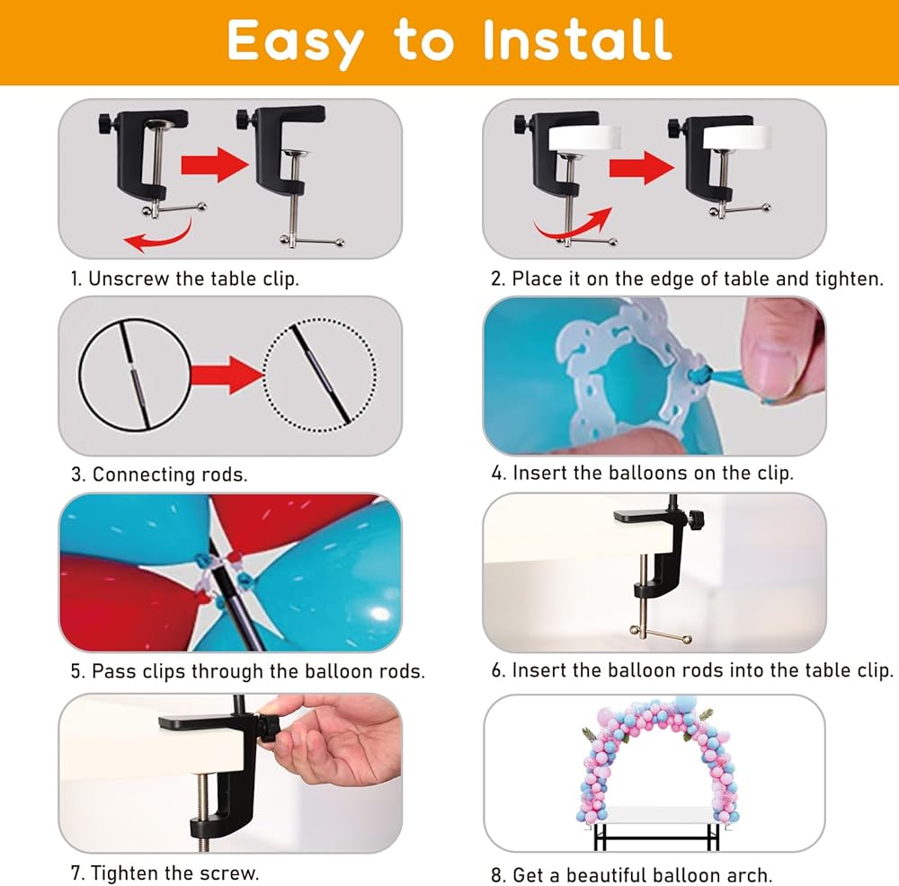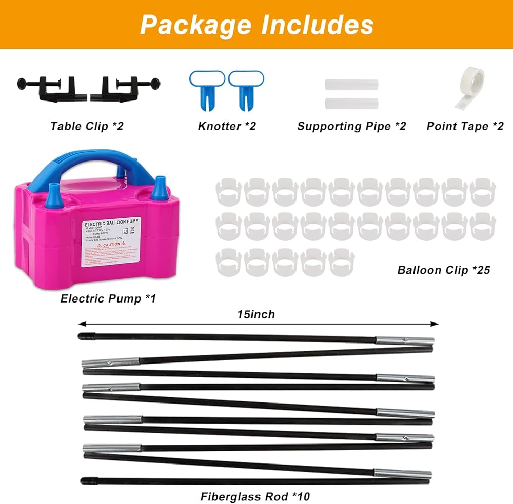 حزمة متعددة الاستخدامات: تتضمن مجموعة قوس البالونات 10 قطع من قضبان الألياف الزجاجية القابلة للطي مقاس 15 بوصة، ومشبكين للطاولة، وقطعتين من أنابيب الدعم، و25 قطعة من مشابك البالونات، وقطعتين من العقد، وقطعة واحدة من الشريط المدبب، وقطعتين من أدلة التعليمات. محطة واحدة لجميع مستلزمات صنع زخارف قوس البالون.