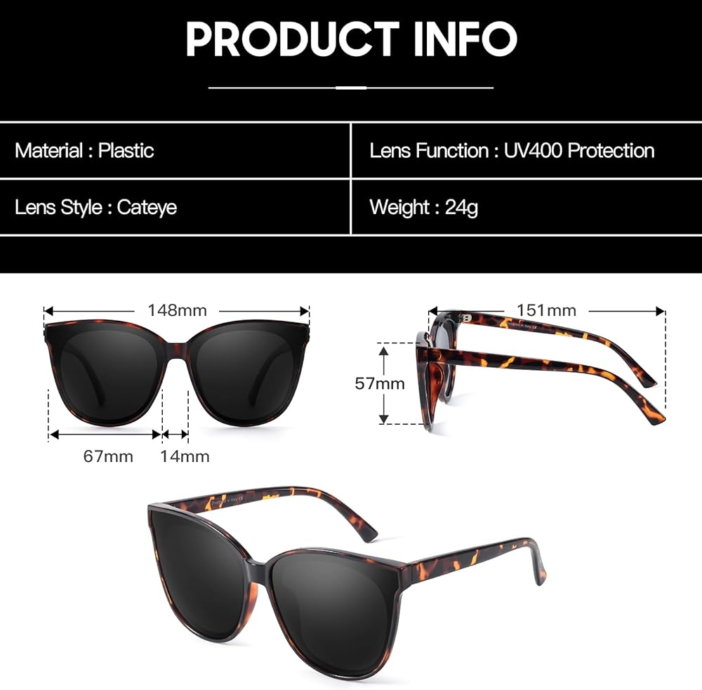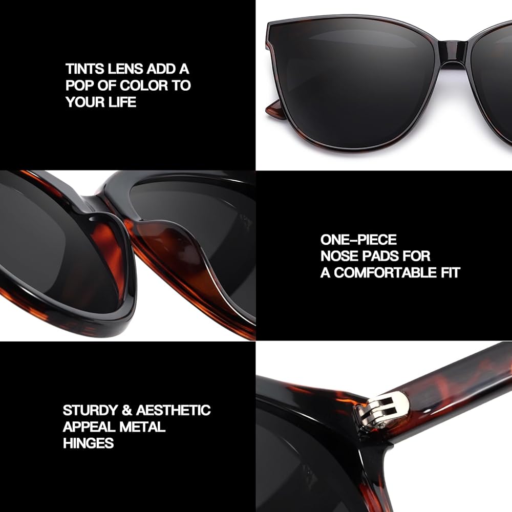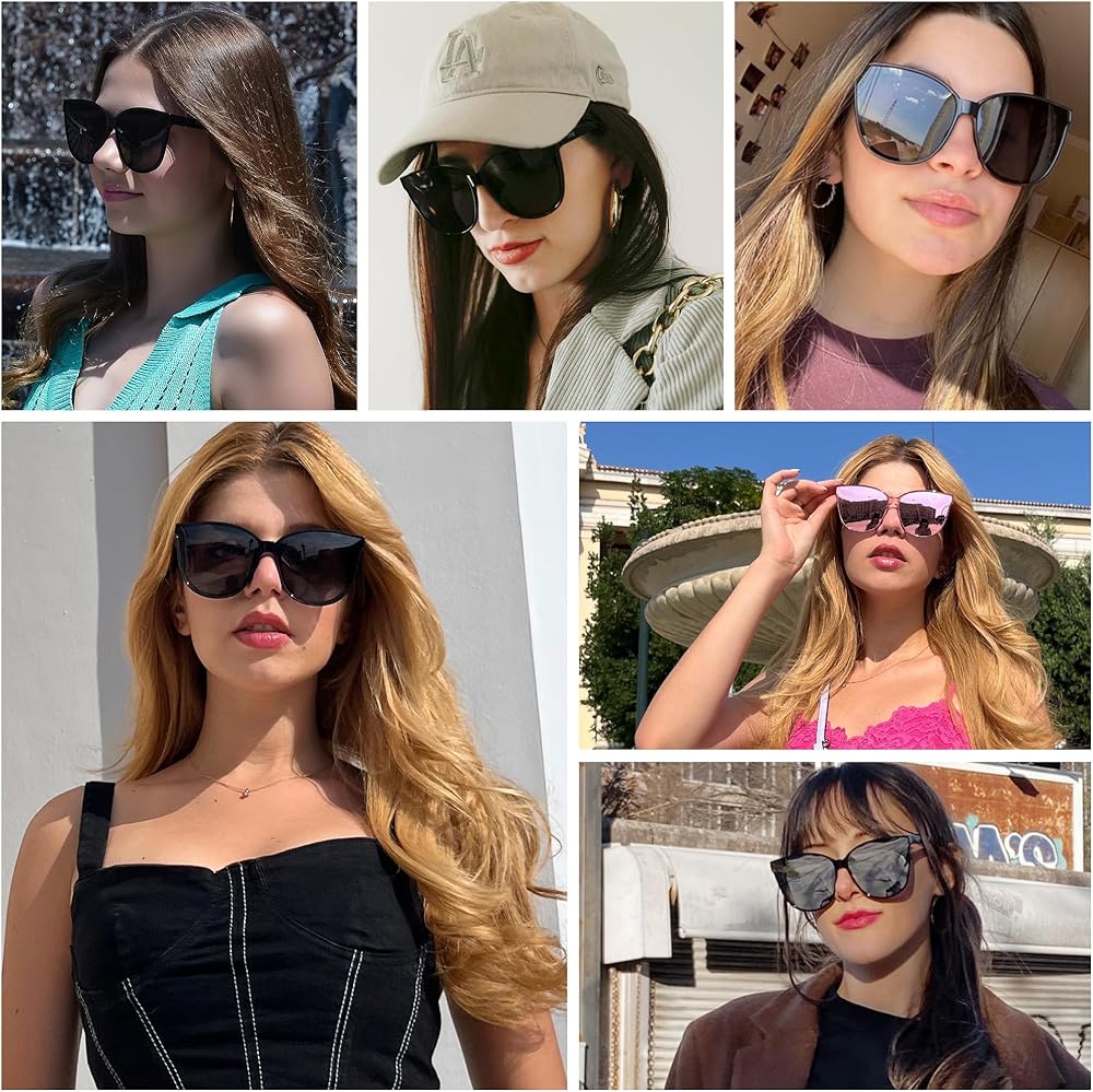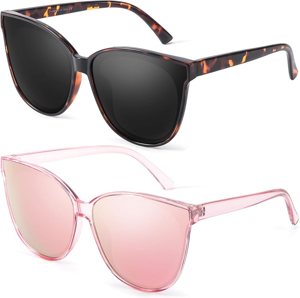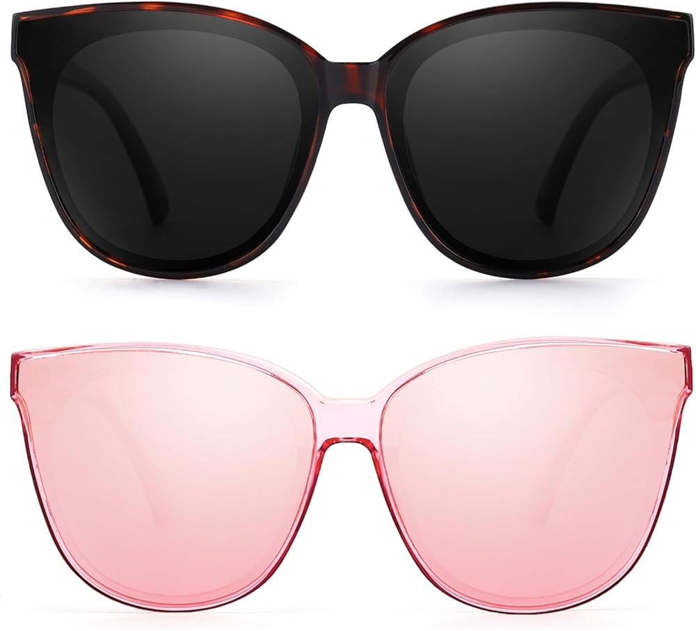 نظارة شمسية عين القطة للنساء، 2 قطعة، 2024 مستقطبة كبيرة الحجم وعصرية وظلال عتيقة