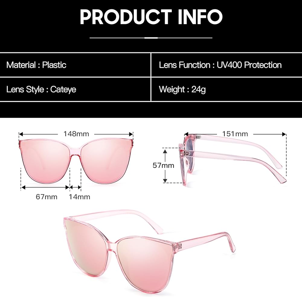 • تصميم عصري كبير الحجم: الإطارات العصرية كبيرة الحجم هي الاتجاه اليوم. التصميم الأنيق للغاية يمكنه حماية عينيك من أشعة الشمس. وفي الوقت نفسه، فإن الحرفية الرائعة تجعل النظارات تناسب جميع أشكال الوجه بشكل جيد، مما يظهر تفردك وأناقتك. تعتبر هذه النظارات الشمسية ذات الحجم الكبير خيارًا جيدًا لإكسسوارات الموضة، والتي يمكن أن تتماشى مع جميع أنواع الملابس المميزة.